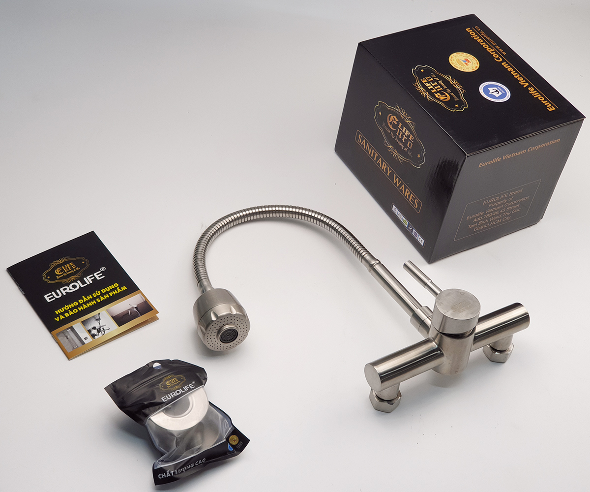 Vòi rửa chén nóng lạnh, dây kéo Inox SUS 304 Eurolife EL-T010 - Hãng sản xuất : Eurolife - Việt Nam - Trọng lượng : 1584 Grs - Chất liệu : Sản phẩm được đúc