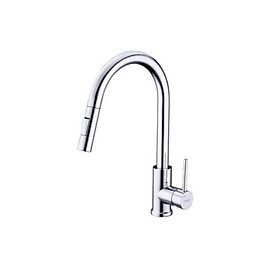 Mã sản phẩm: Ponte Chrome – Hình dáng: Vòi thiết kế bo tròn, đầu vòi cong. Một tay vòi nằm ngang – Chức năng: Nóng lạnh + Rút dây + Đầu vòi khớp xoay +