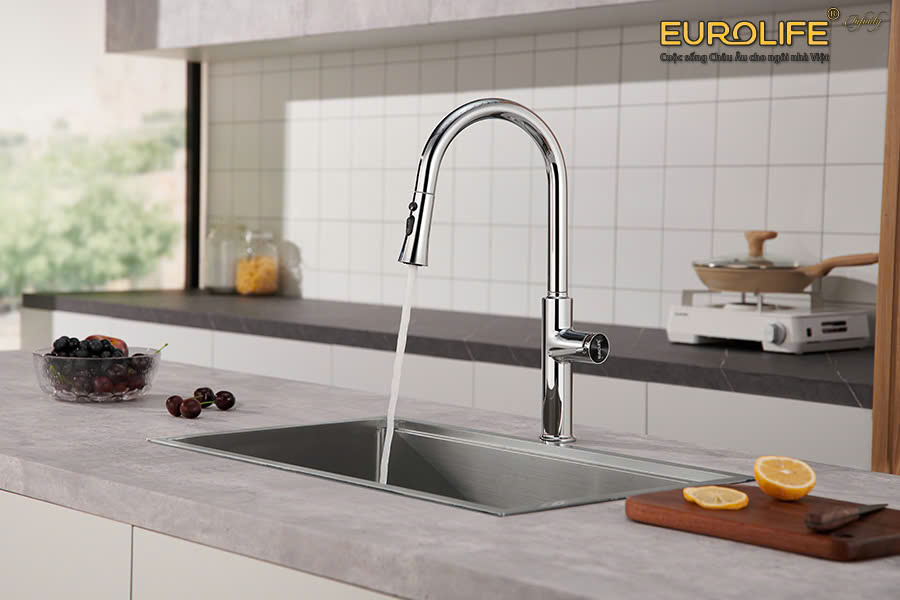 Vòi rửa chén nóng lạnh, dây kéo Inox SUS 304 Eurolife EL-T010 - Hãng sản xuất : Eurolife - Việt Nam - Trọng lượng : 1584 Grs - Chất liệu : Sản phẩm được đúc