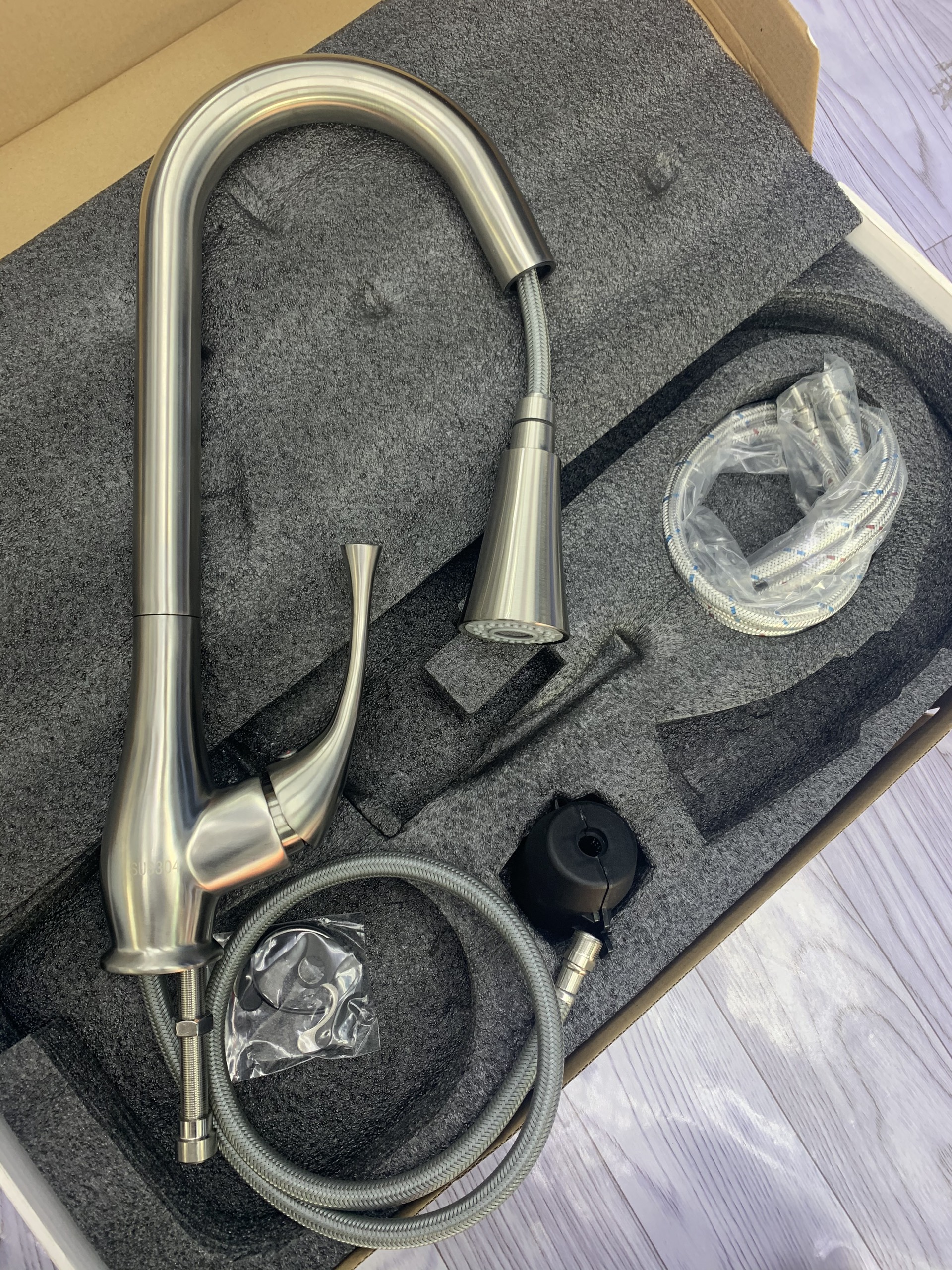 Thông số kỹ thuật: Chất liệu: Inox 304 Thiết kế 2 đường nước nóng lạnh Đầu vòi rửa có thể kéo dài Đầu vòi tạo bọt, giúp tiết kiệm nước và hạn chế bắn nước