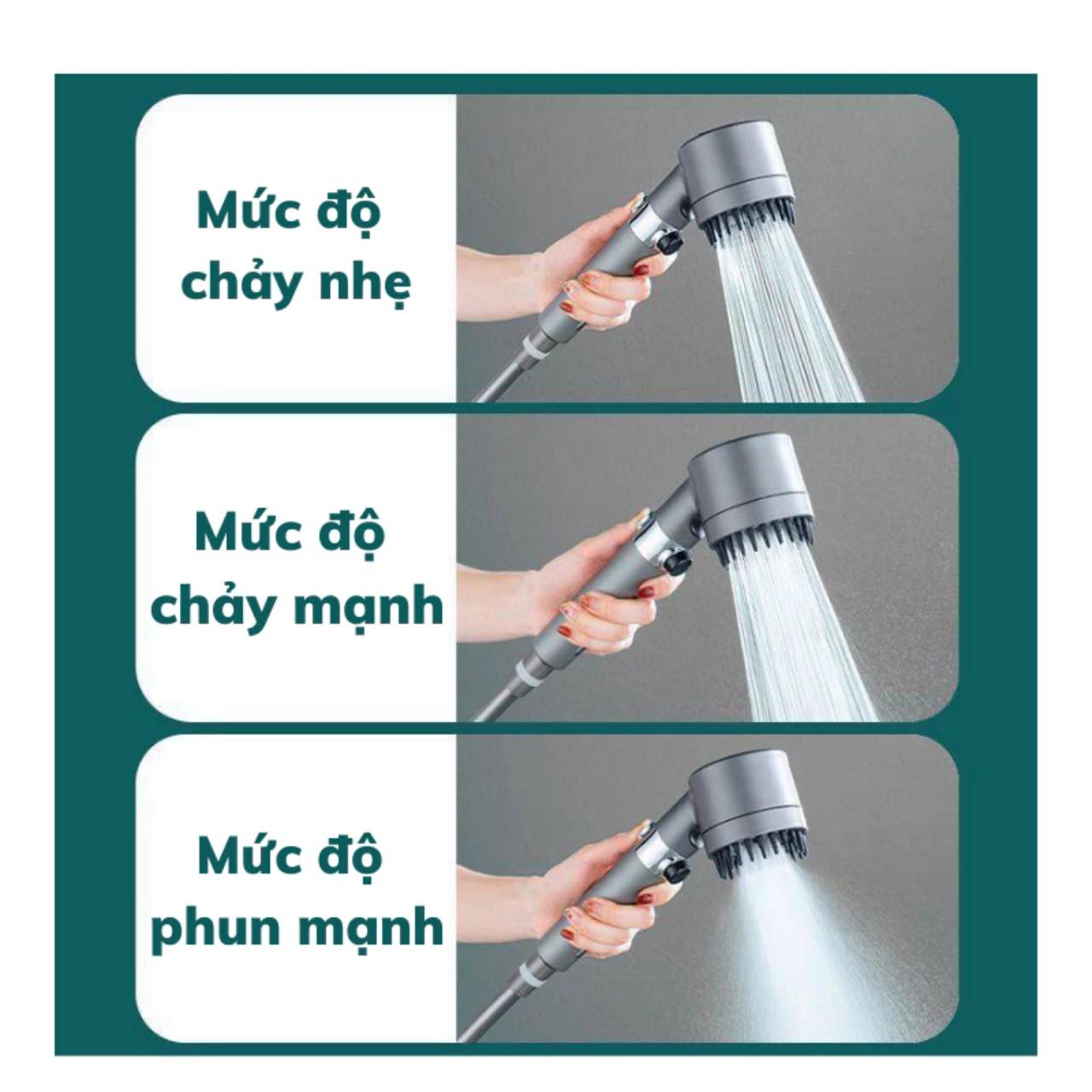 Vòi sen tăng áp, đầu V=vòi hoa sen Masage 4 trong 1, 3 chế độ áp suất cao tiết kiệm nước lõi cotton lọc cho nhà tắm