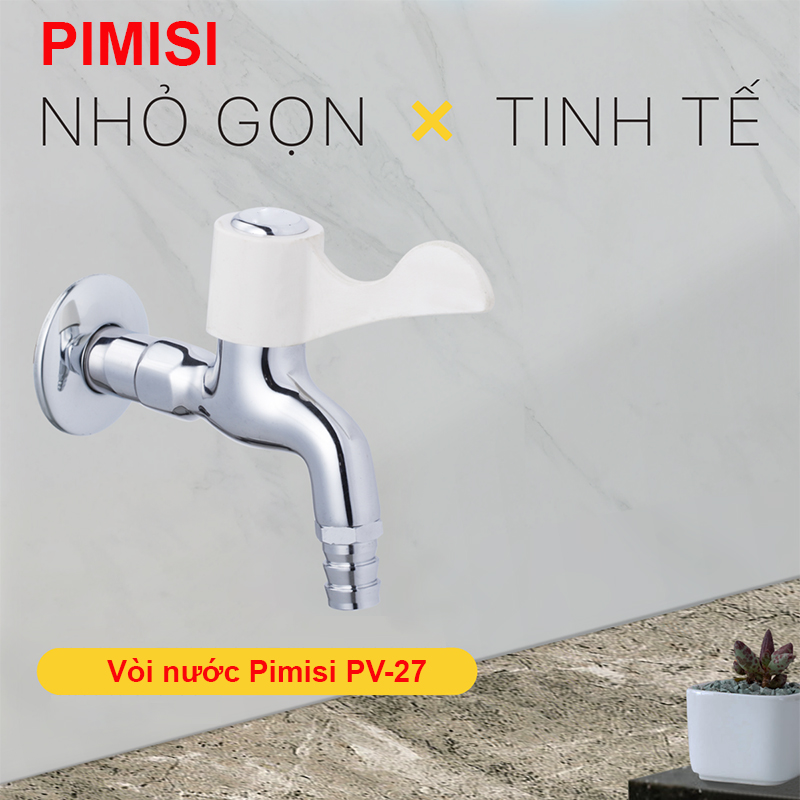 Chào Bạn, có phải Bạn đang muốn tìm hiểu vòi xả nước lạnh gắn tường Pimisi PV-27, hàng chính hãng Pimisi được làm từ chất liệu đồng thau, mạ Crom - Niken sáng bóng cao cấp. Đáp ứng