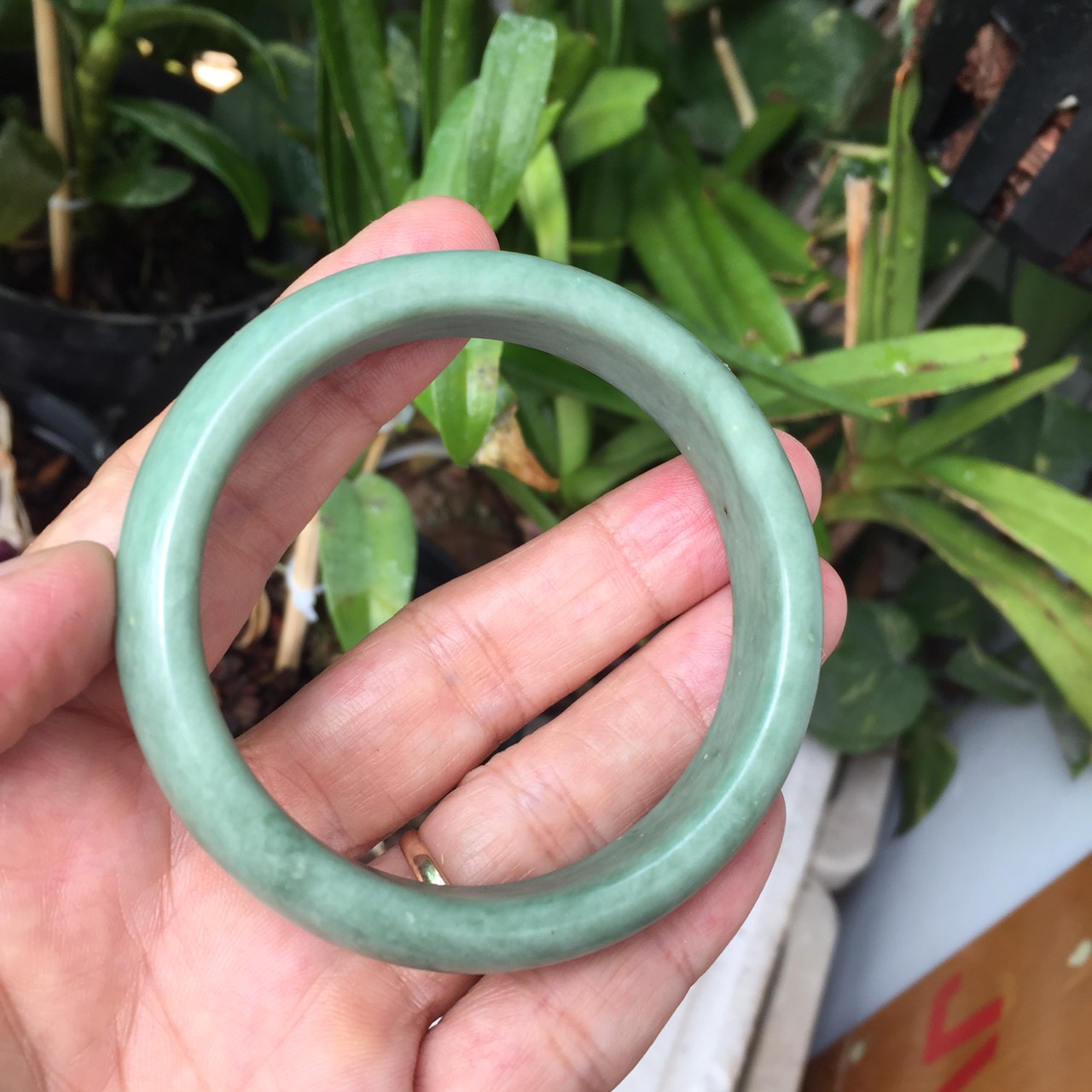 Vòng tay Nữ Đá Cẩm Thạch mới TR Lý 57 mm x cọng 7,5mm Màu Xanh lý tươi trắng 2 bên đều vòng đẹp Nữ 55kg - 64kg đeo đẹp món quà tặng chính mình
