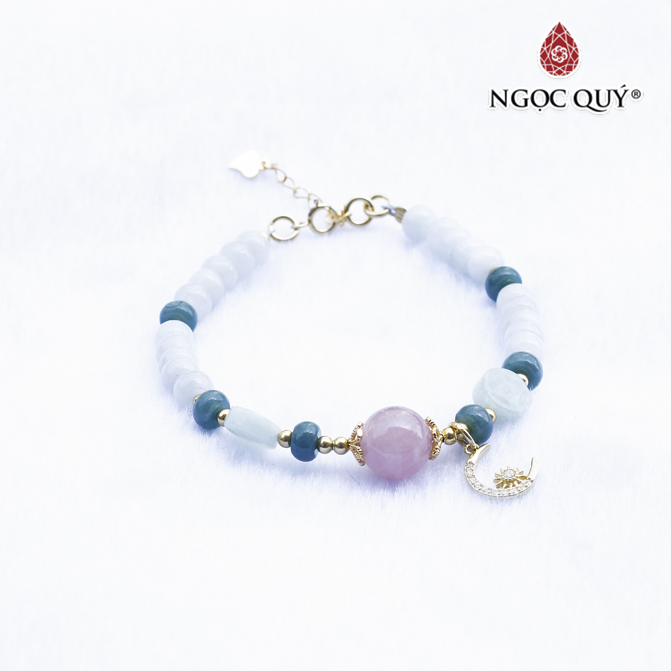 - Vòng Tay Thạch Anh Dâu Mix Tím Ngọc Charm Hoa Mặt Trời Ngọc Quý Gemstones VT109 mang màu hồng nhẹ nhàng, chứa năng lượng bổ trợ mạnh mẽ về tình duyên, cải thiện các