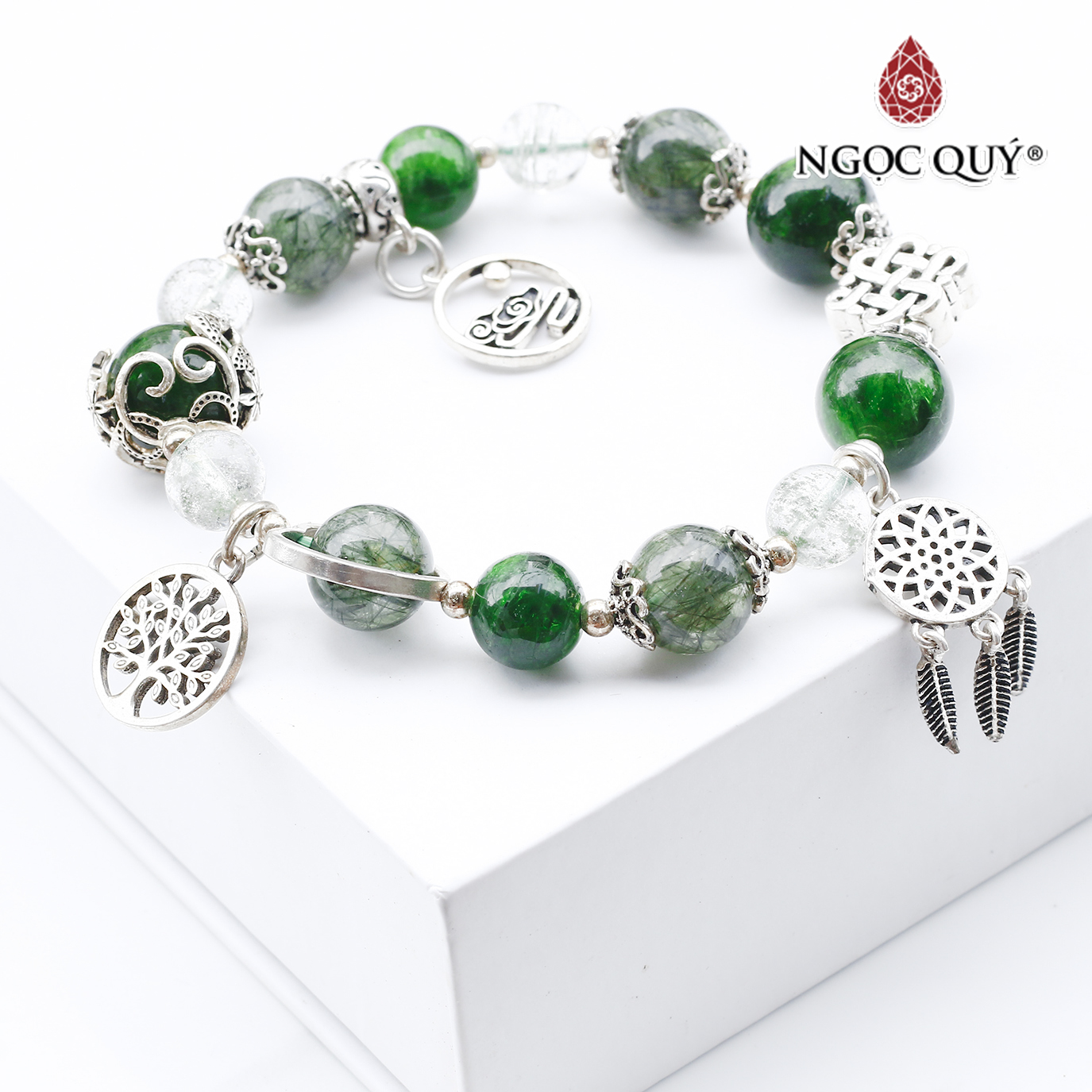 ✨Vòng đá thạch anh tóc xanh phối diopside charm bạc mệnh hỏa, mộc - Ngọc Quý Gemstones