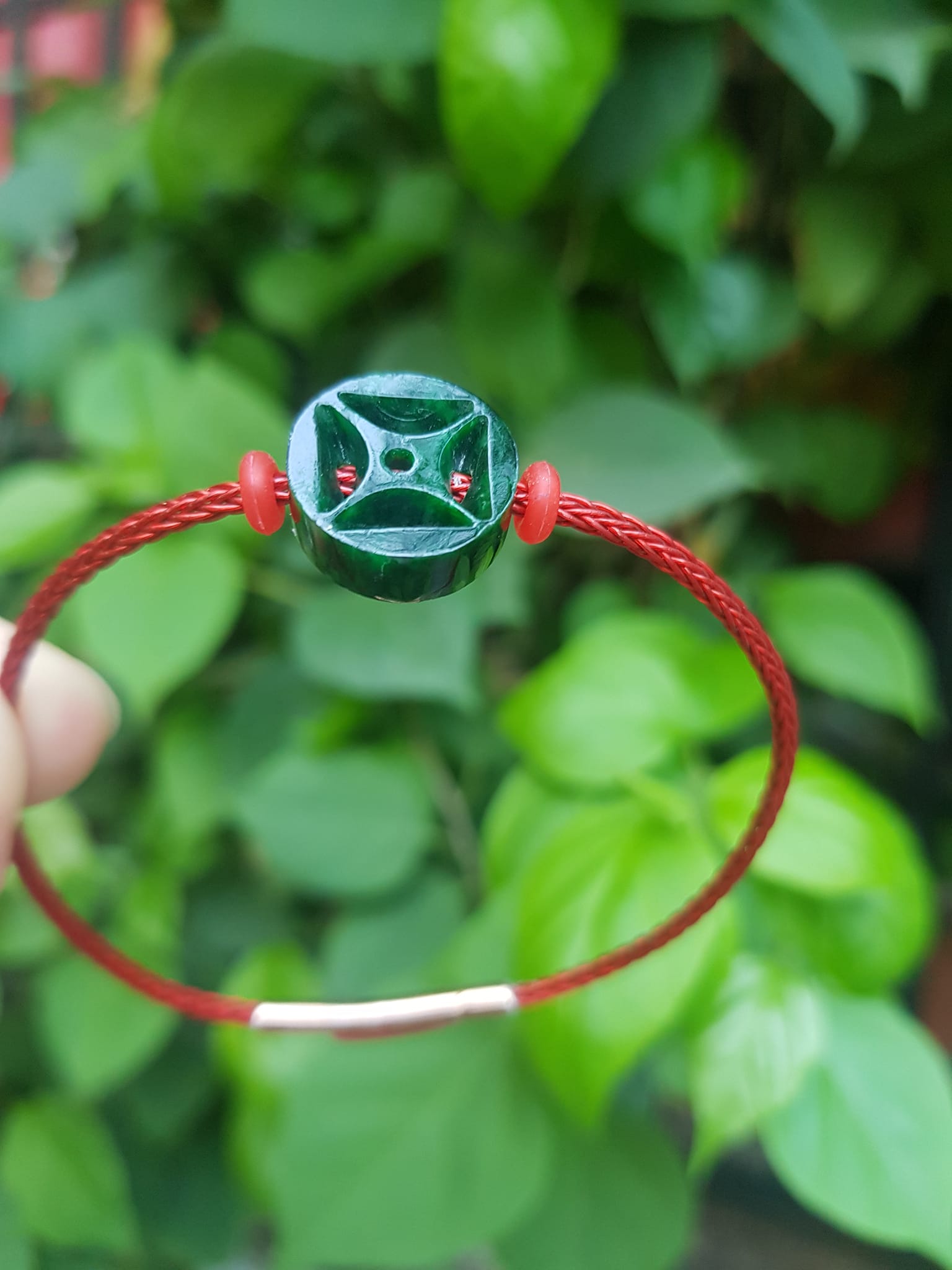 ✨Vòng đeo tay may mắn charm Đồng Tiền Xanh Tài Lộc Chất liệu đá cẩm thạch xanh đậm tự nhiên Vòng charm đồng tiền dây Đỏ may mắn nữ đeo xinh đẹp may mắn ạ