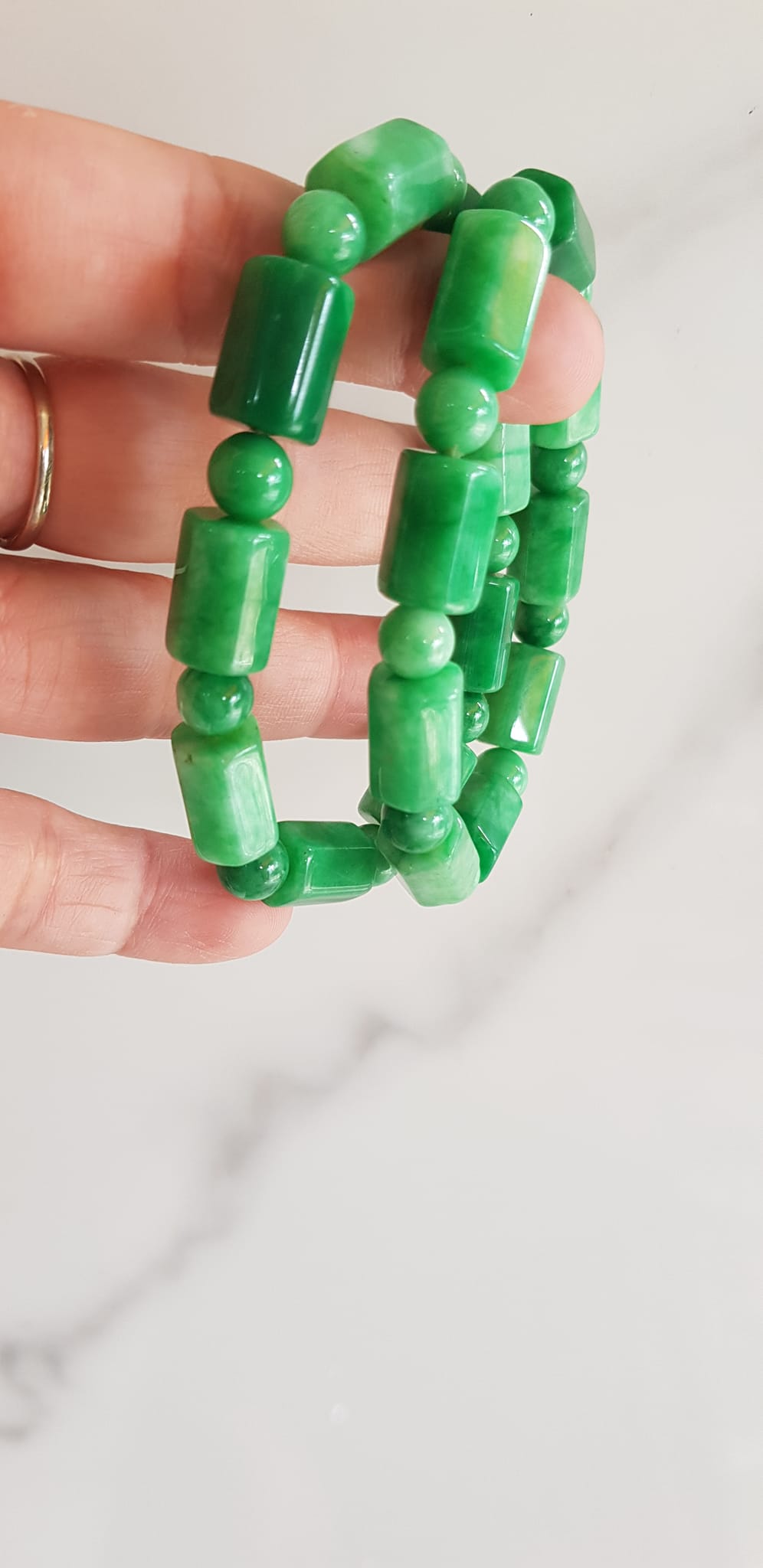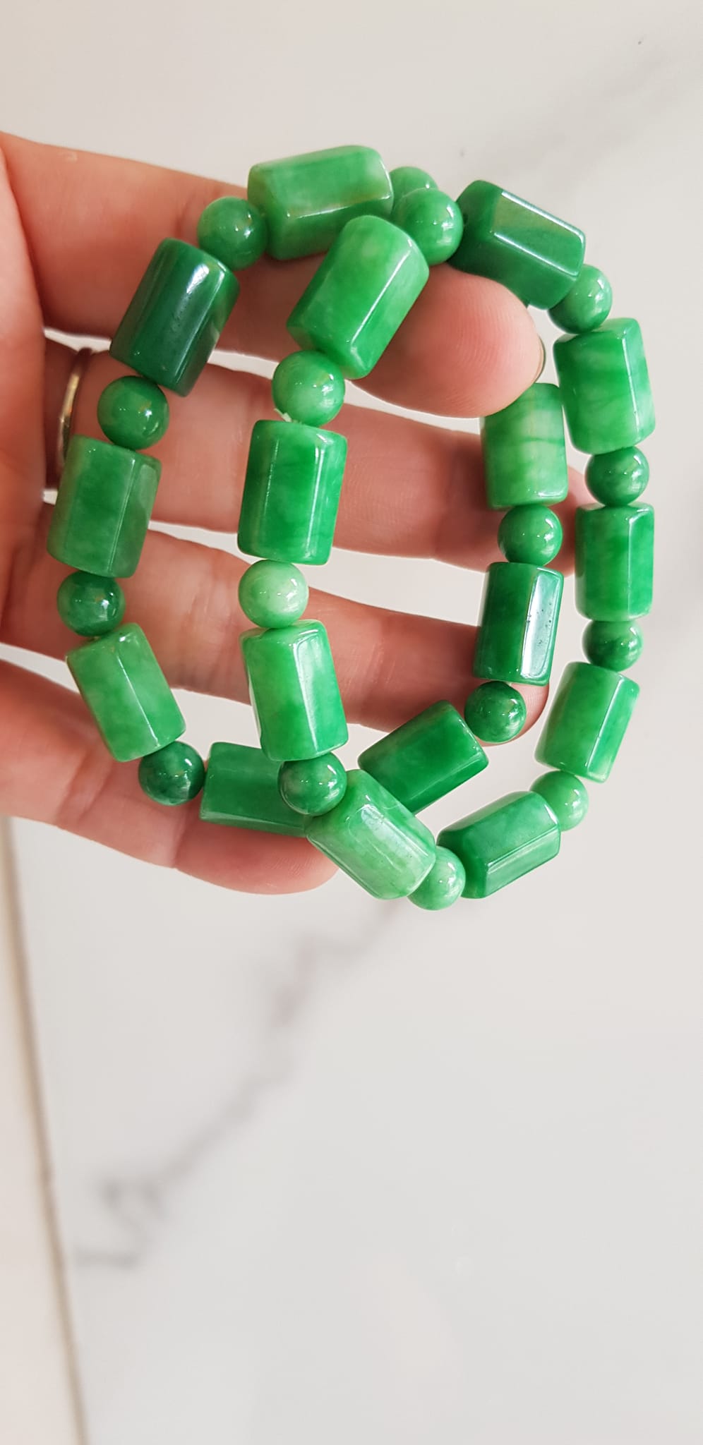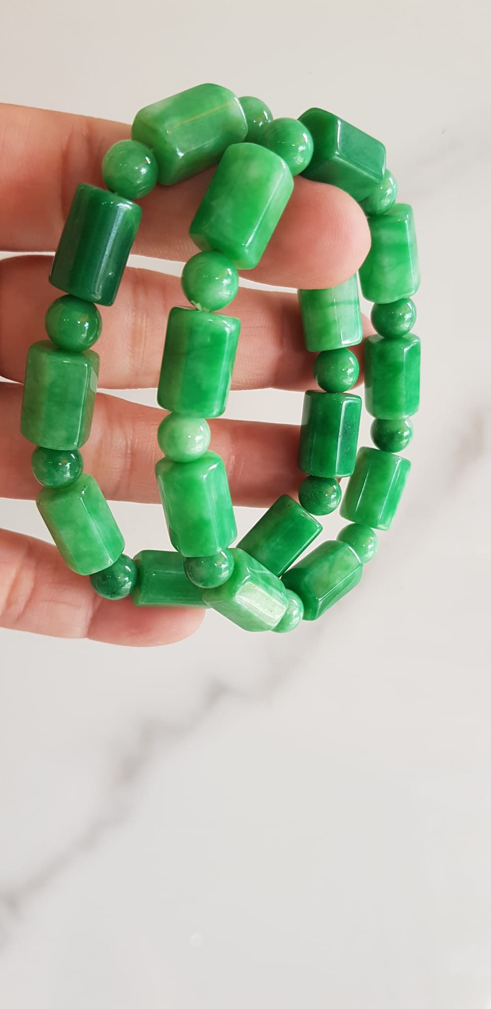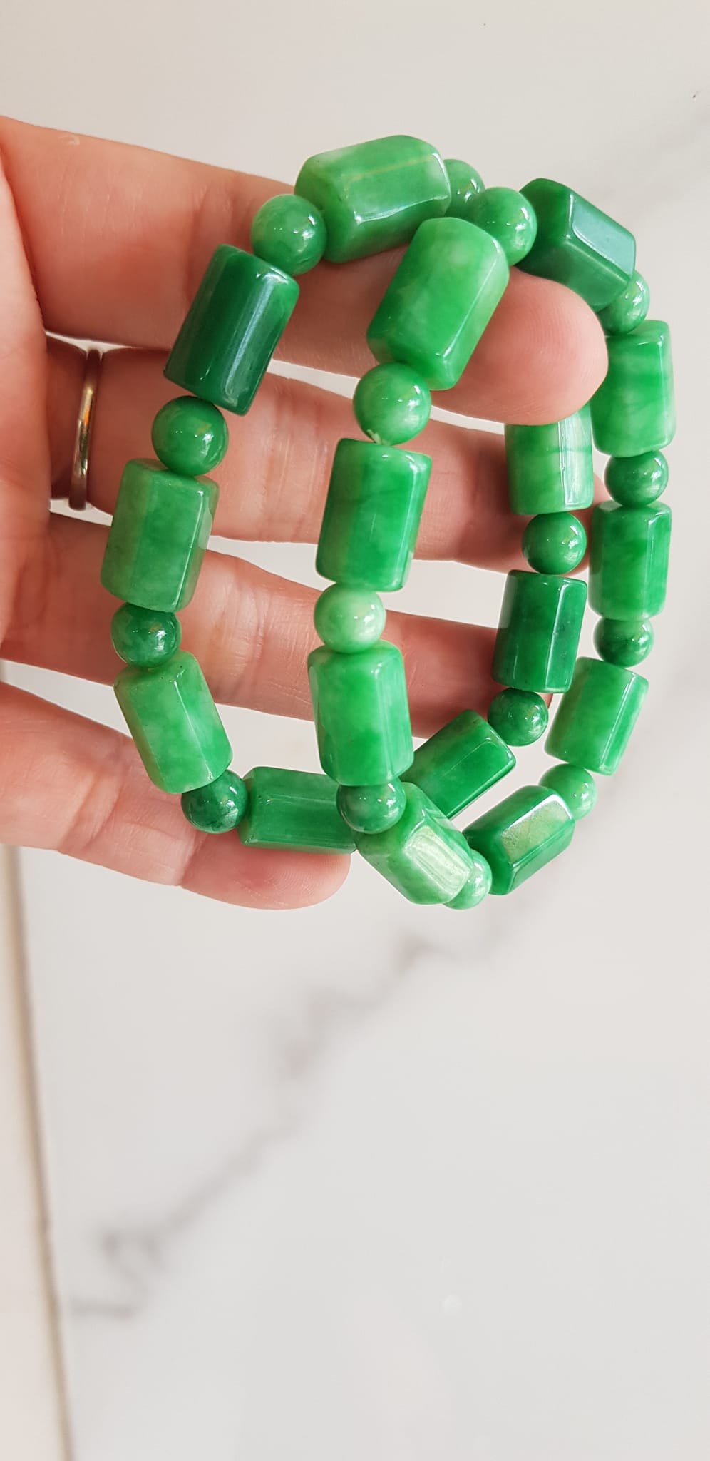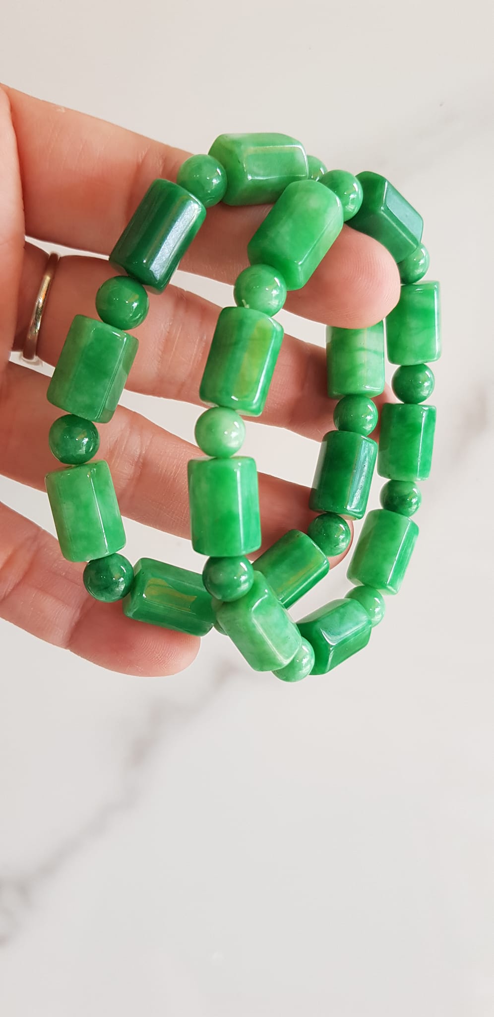 ✨Vòng đeo tay nữ đá cẩm thạch xanh mix kiểu hạt ống vuông dài tròn size 10mm Nữ mệnh mộc hỏa thủy đeo xinh may mắn ạ