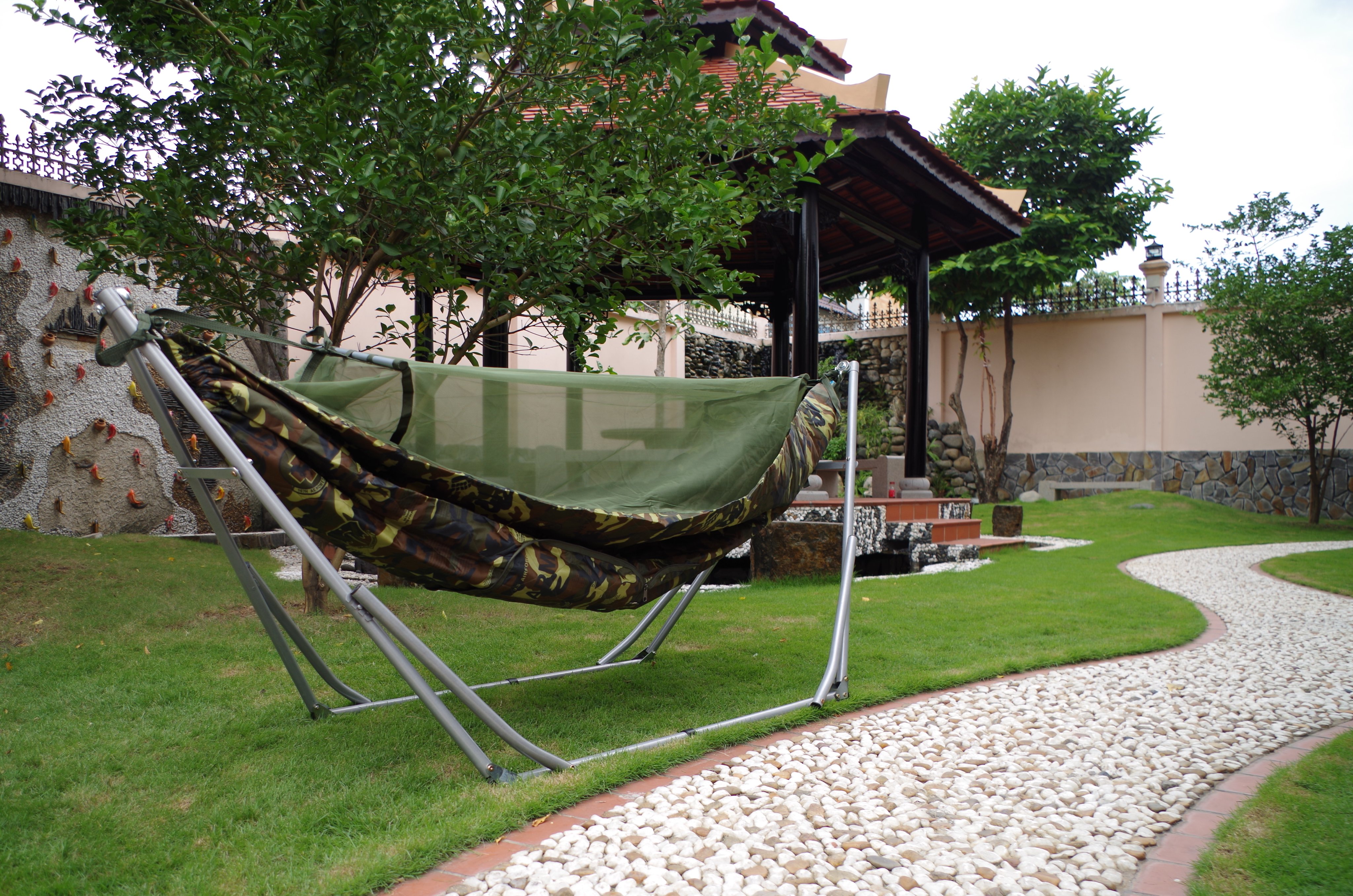 Thông tin sản phẩm võng xếp Chất liệu: (dung sai +-5%) · Ống thép, sơn tĩnh điện · Đường kính 27.0mm, chiều dày 1.1mm Mô tả chi tiết: · Võng xếp gọn, cơ động, có