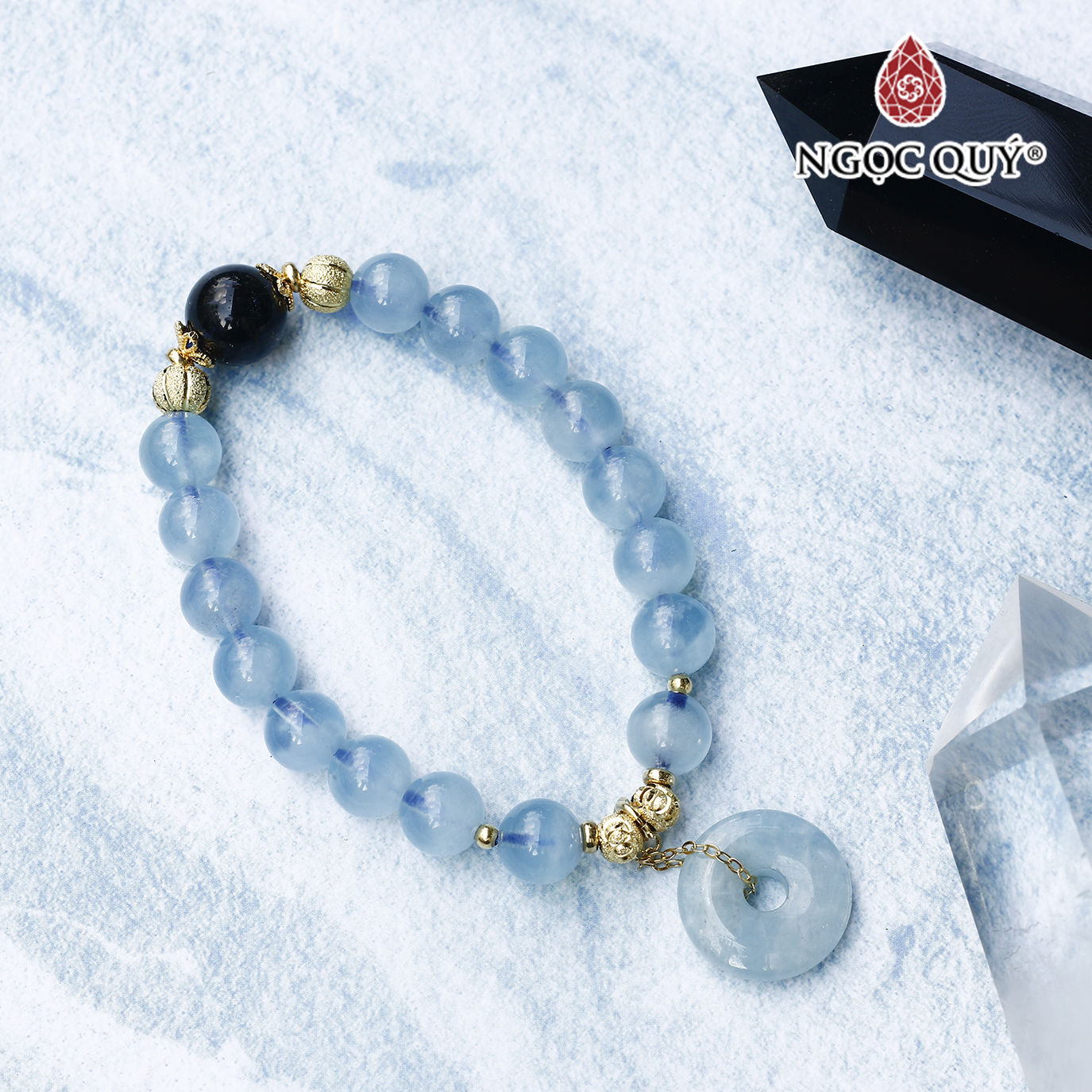 VÒNG TAY ĐÁ CẨM THẠCH PHỈ THÚY PHỐI AQUAMARINE : Aquarmarine là một loại đá thuộc họ Beryl, sở hữu màu xanh tuyệt đẹp của biển cả, là món quà mà nàng tiên cá dành