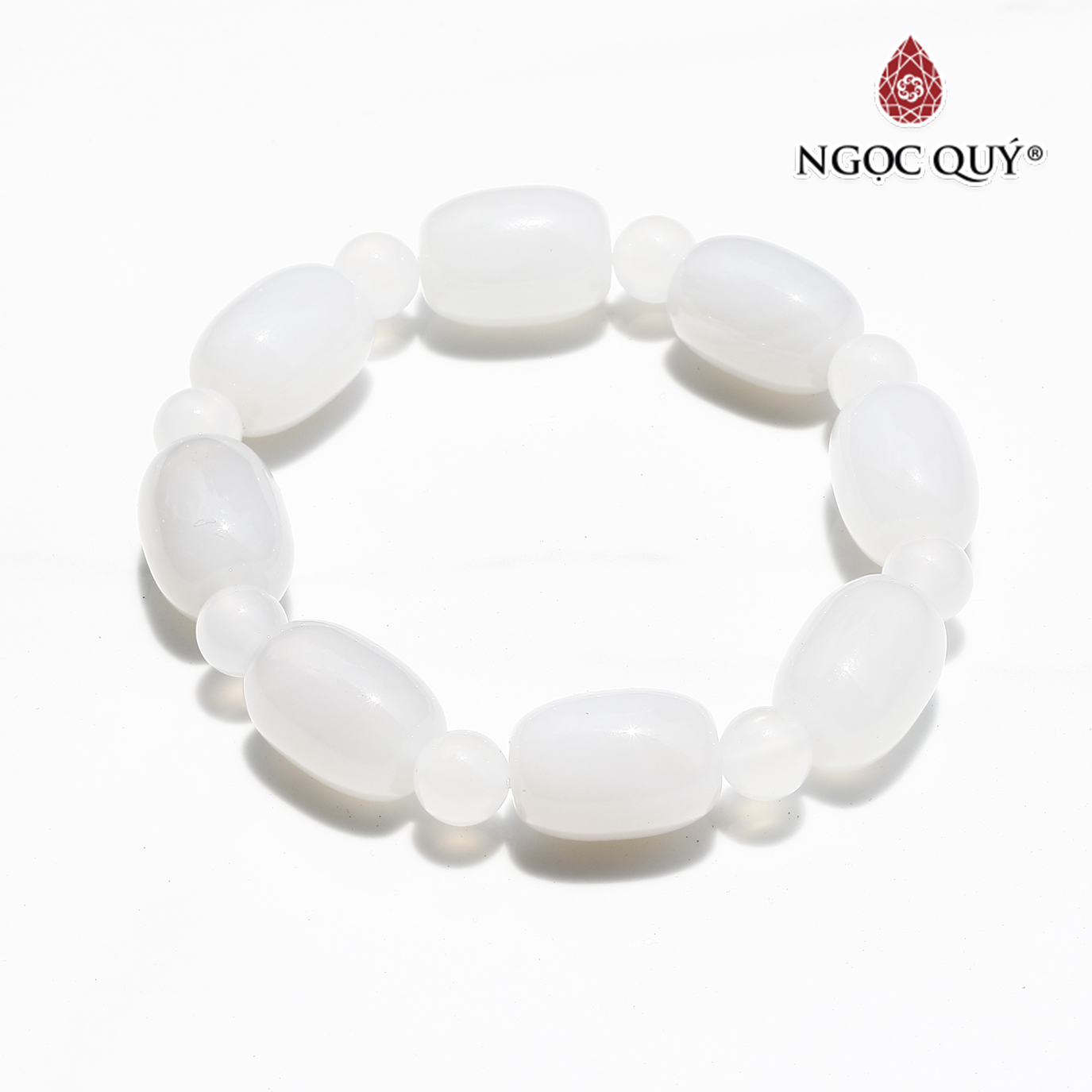 Vòng tay lu thống đá mã não trắng - Hợp mệnh kim, mệnh thủy | Ngọc Quý Gemstones |