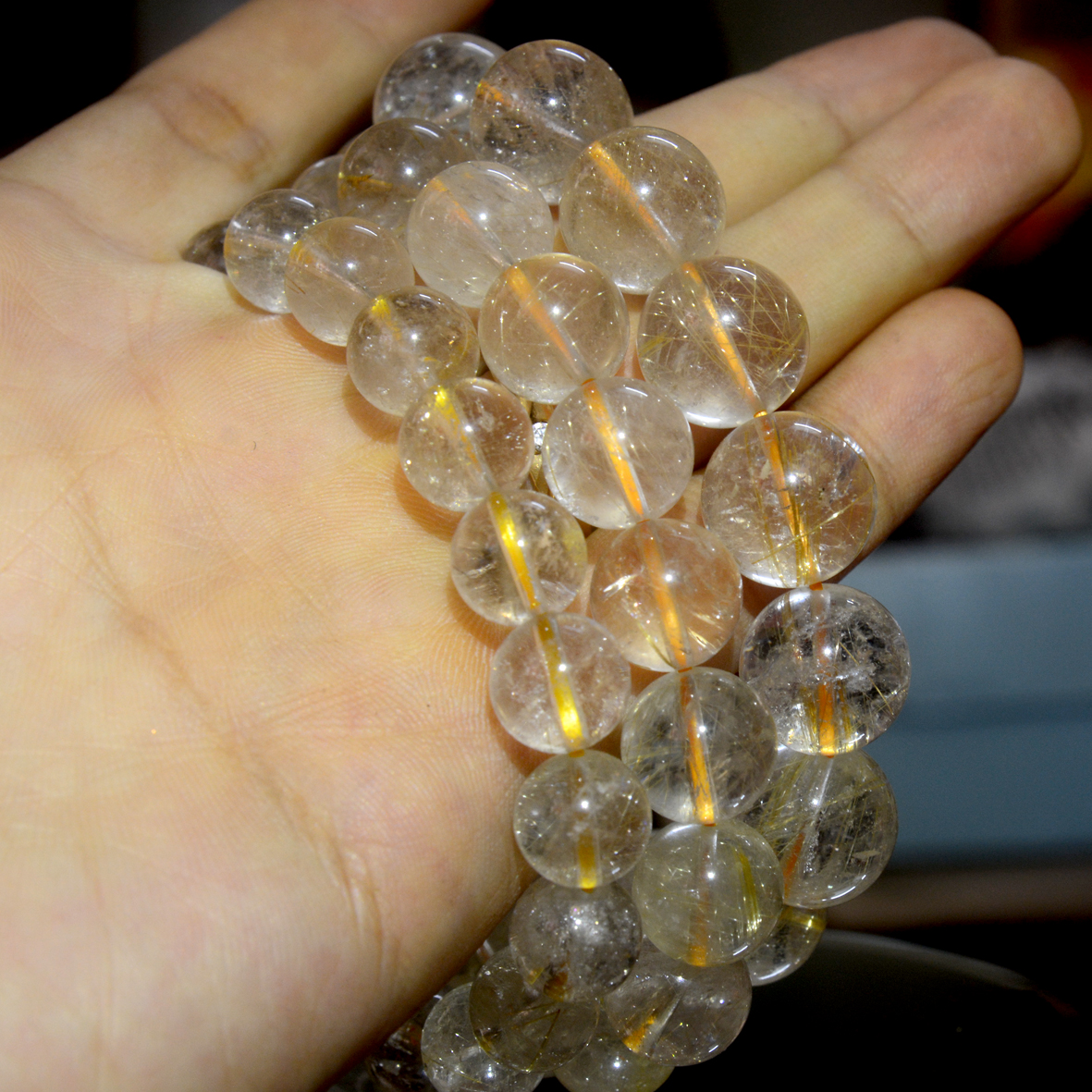 Vòng Nam Đeo size 14ly gồm 14 hạt vô cung Chât liệu SAN HÔ HÓA THẠCH Vòng Màu vàng trắng Sáng Nam đeo tay đẹp sang tốt ạ Sản phẩm này là tài sản cá