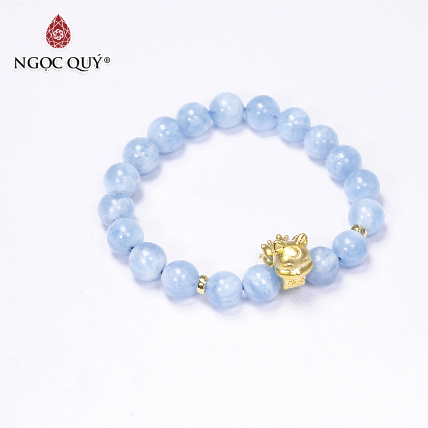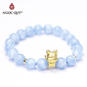 VÒNG TAY ĐÁ AQUAMARINE PHỐI HỒ LY MẠ VÀNG:
