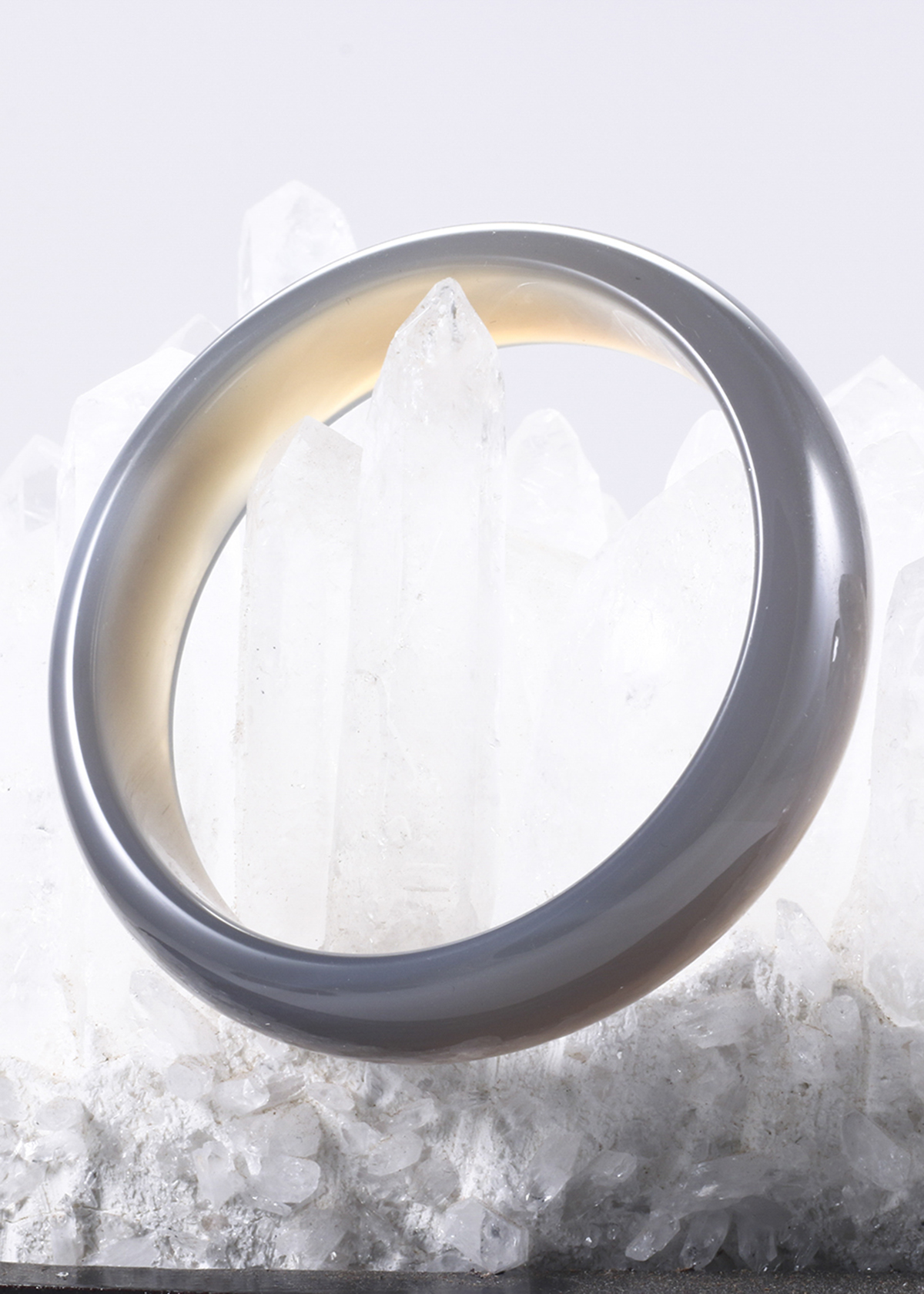 Vòng nguyên khối bản cọng tròn mỏng đá mã não xám - Hợp Mệnh Kim & Thủy [ Ngọc Quý ]
