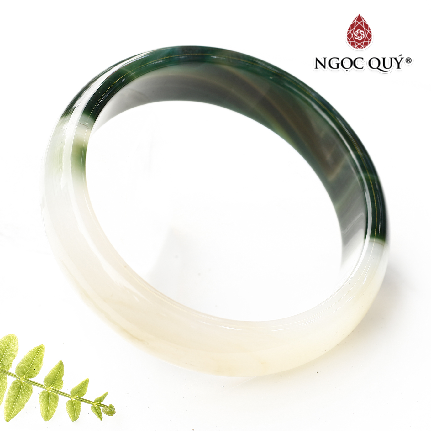 Vòng nguyên khối bản cọng tròn đá mã não xanh - Hợp Mệnh Mộc & Hỏa [ Ngọc Quý ]