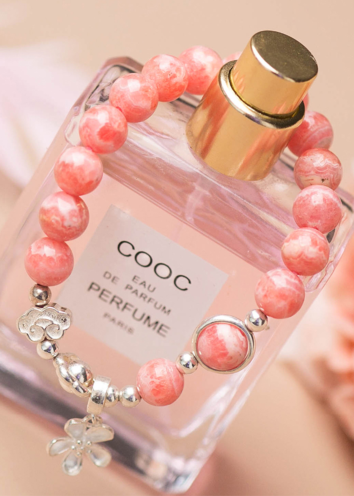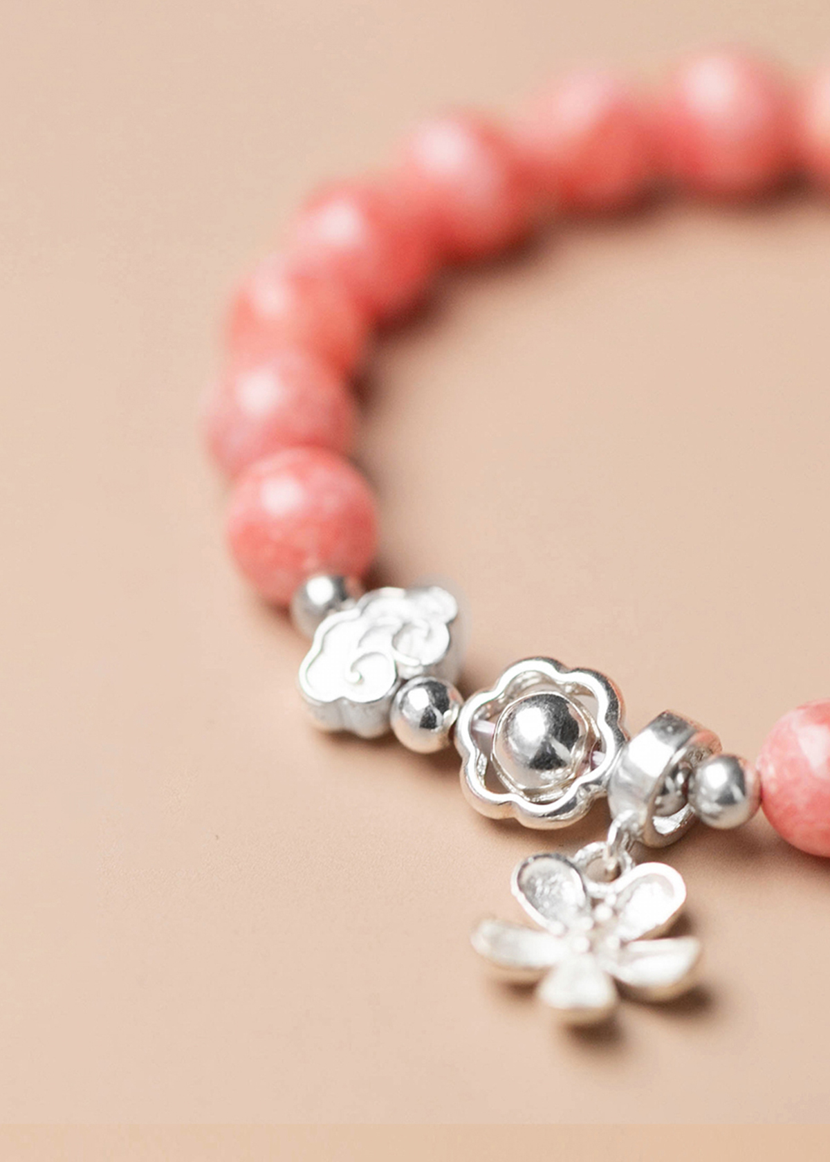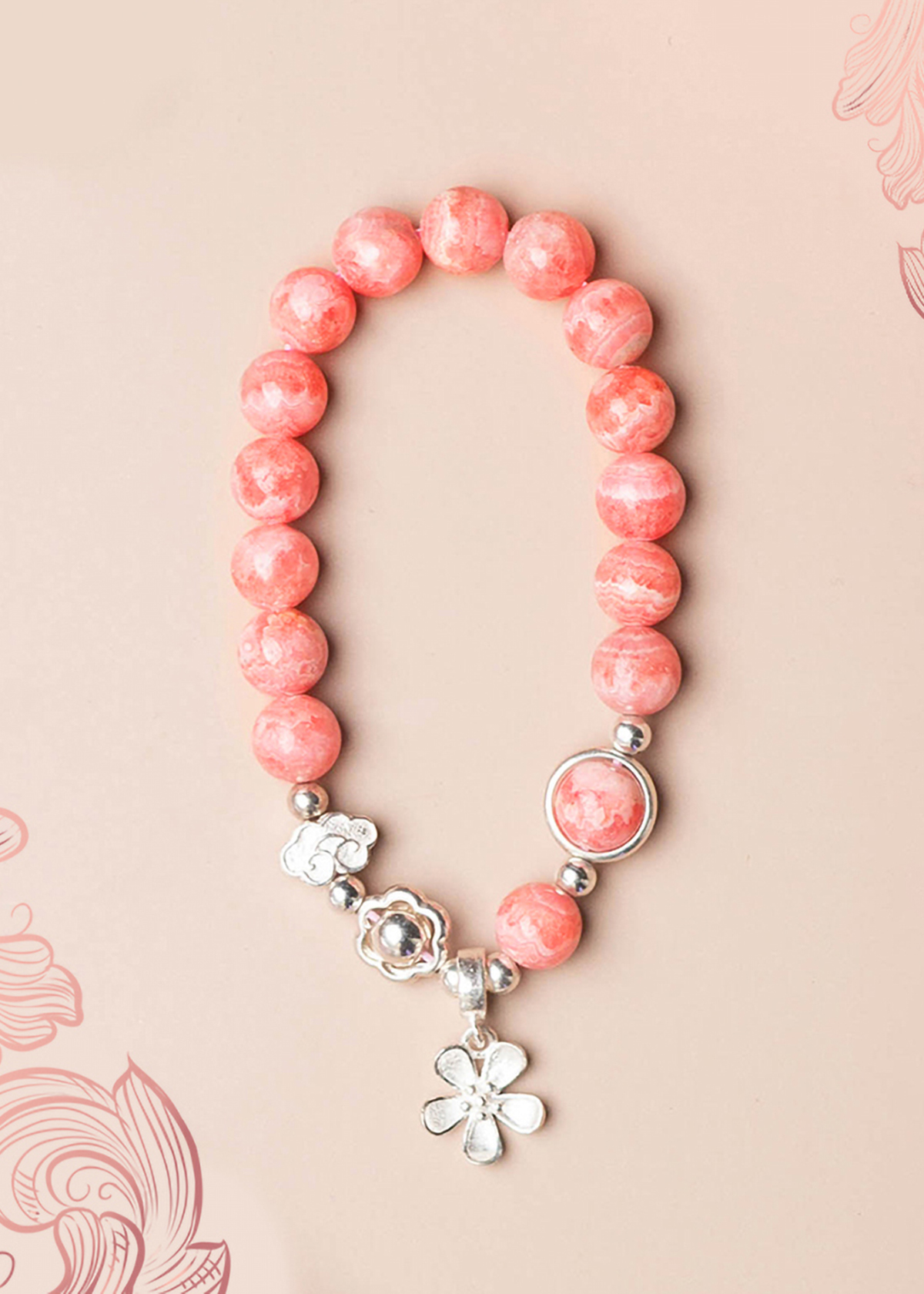 Vòng Tay Đá Rhodochrosite Phối Charm Hoa :