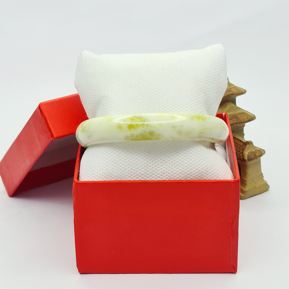 Vòng tay Nữ Đá Cẩm Thạch mới TR Lý 57 mm x cọng 7,5mm Màu Xanh lý tươi trắng 2 bên đều vòng đẹp Nữ 55kg - 64kg đeo đẹp món quà tặng chính mình
