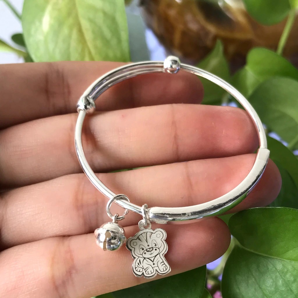 ✨Vòng Tay Lắc Tay Cho Bé Bạc S99 Chuông Mix Bé Hổ Free Size BẠC HIỂU MINH .