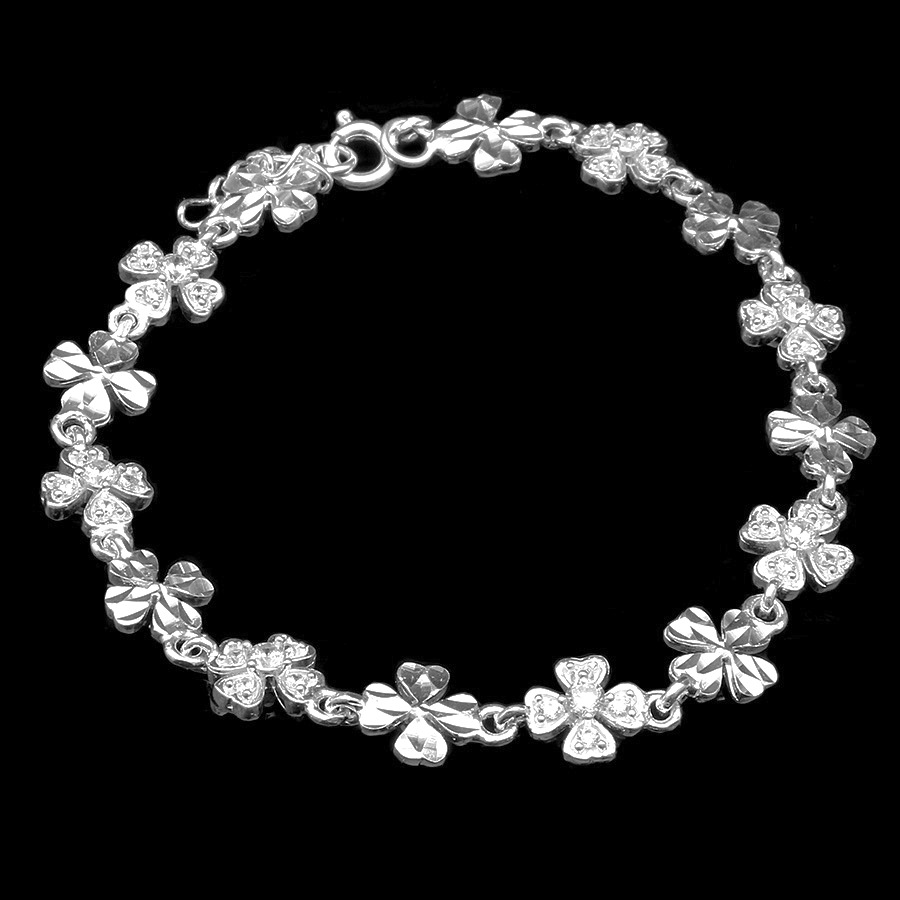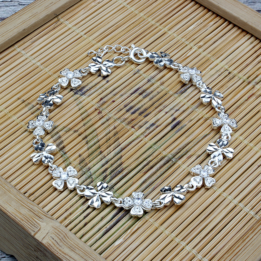 Vòng Tay , Lắc Tay Nữ Bạc 925 Cỏ 4 Lá Đính Đá May Mắn BẠC HIỂU MINH LTU434