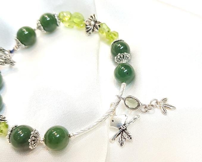 Vòng tay đá ngọc bích phối charm bạc - Hợp mệnh mộc, mệnh hỏa | Ngọc Quý Gemstones |