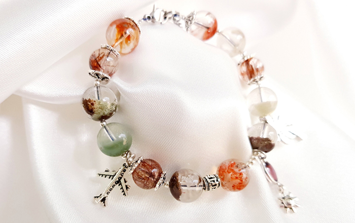 Vòng tay 2line đá thạch anh tóc vàng & ưu linh trắng phối charm | Ngọc Quý Gemstones |