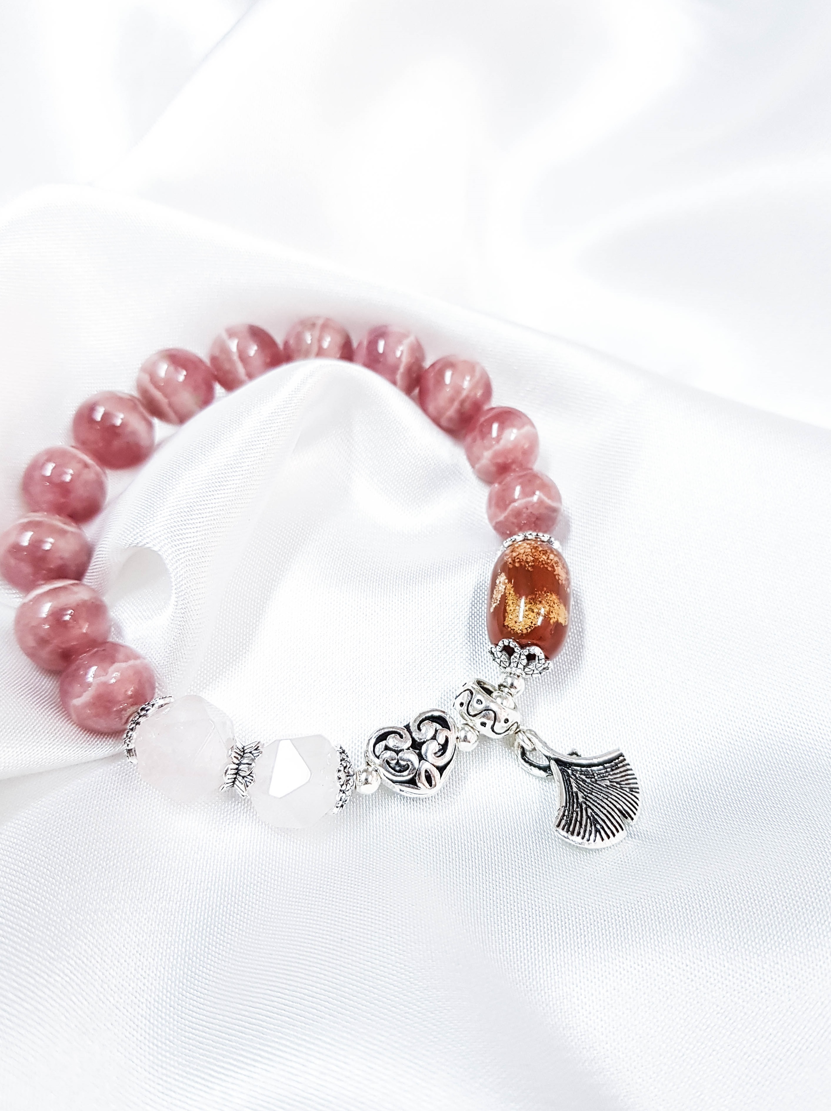 VÒNG TAY ĐÁ THẠCH ANH HỒNG AAA MIX CHARM LỤC TỰ ĐẠI MINH CHÚ: Theo thần thoại, Thần Tình Yêu đã ban tặng cho con người món quà tình yêu dưới dạng Thạch Anh Hồng.