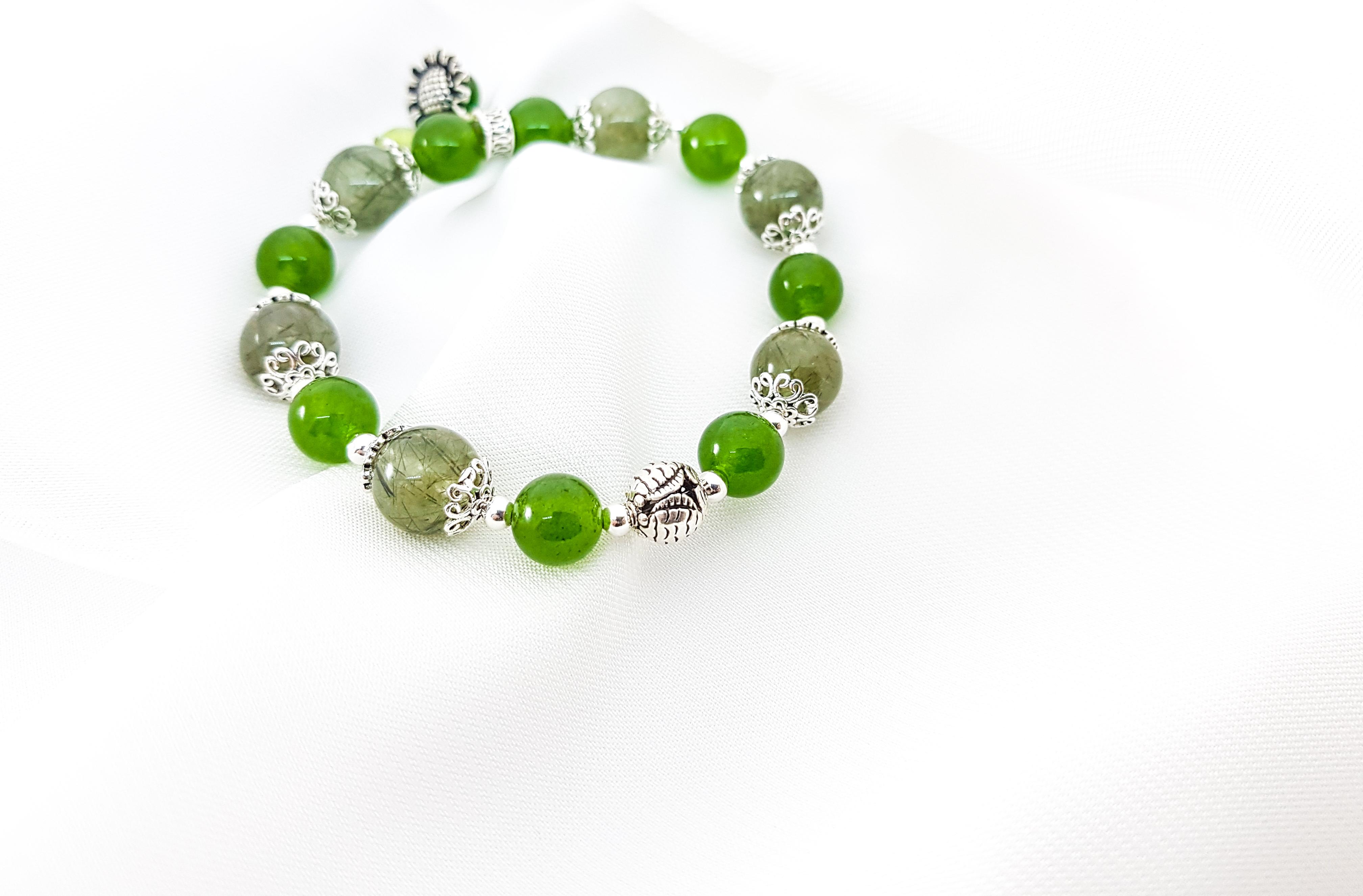 Vòng Thạch Anh Ưu Linh Xanh Phối Hoa Thạch anh xanh Đá Thạch Anh Xanh (Green Aventurine) còn được gọi là “Đá của Cơ Hội”, nó được cho là loại đá mang lại may mắn