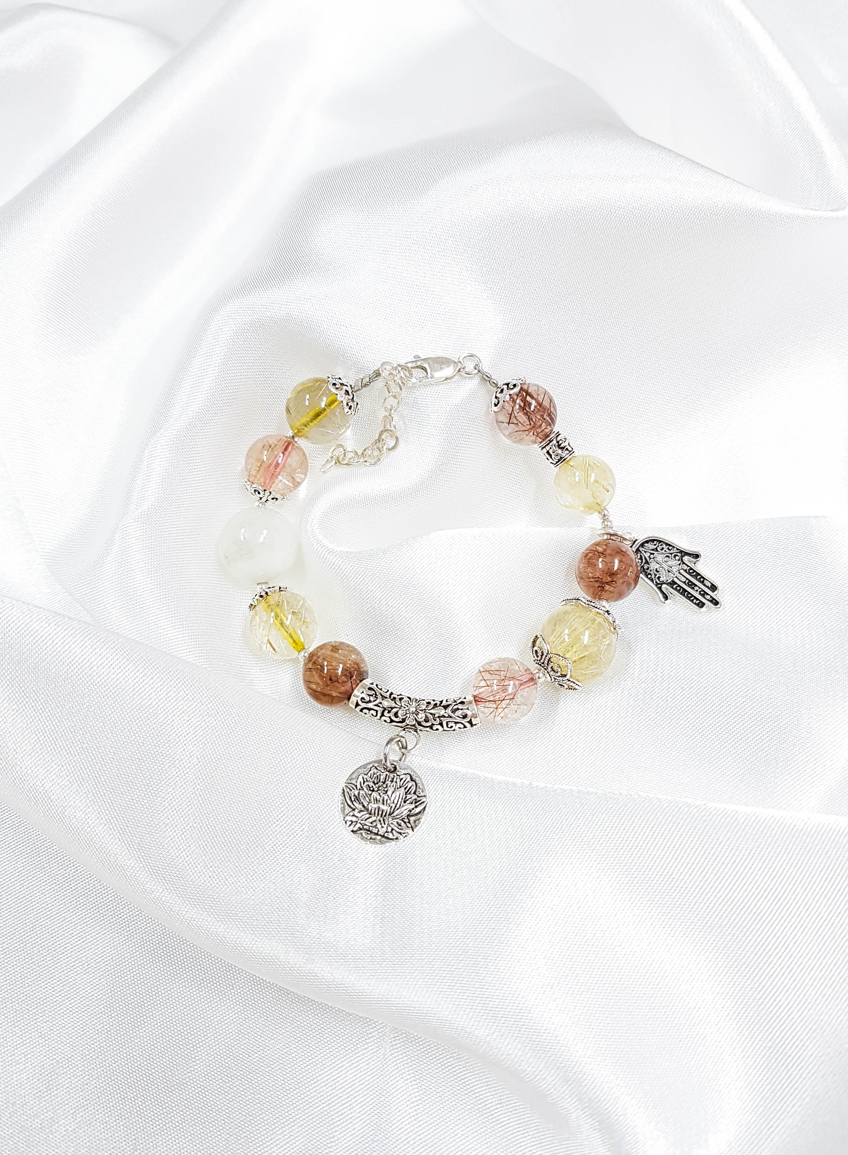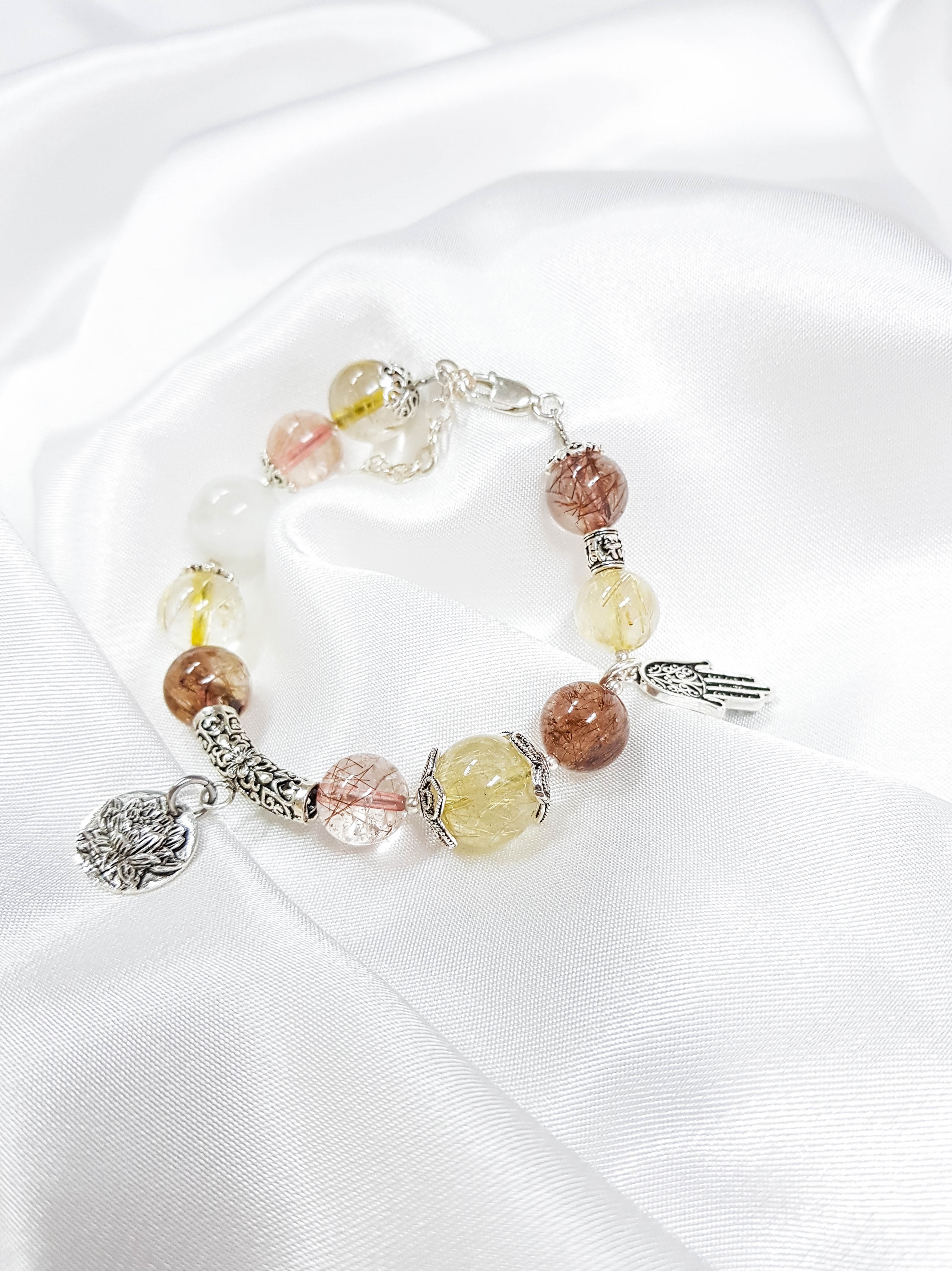 - Vòng Tay Laliz Mệnh Hỏa Thổ Đá Thạch Anh Dâu Tây Mix Charm Bàn Tay Lat.78 tích tụ nguồn năng lượng tích cực giúp xua đuổi mệt nhọc, căng thẳng và lo âu, tạo
