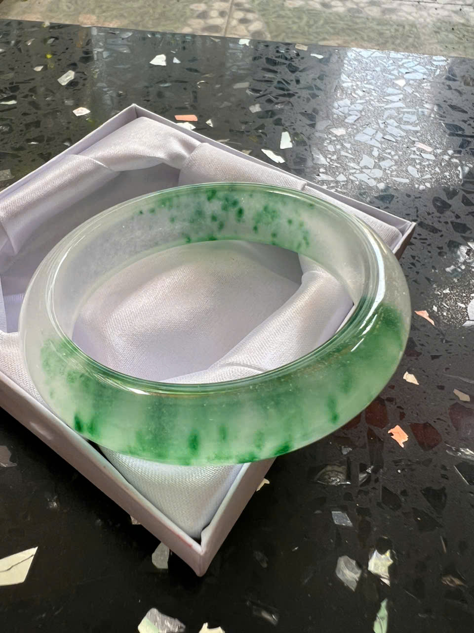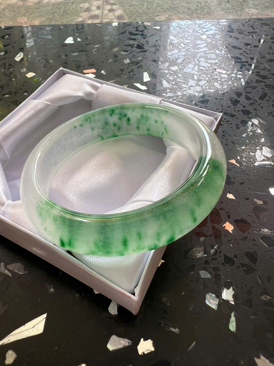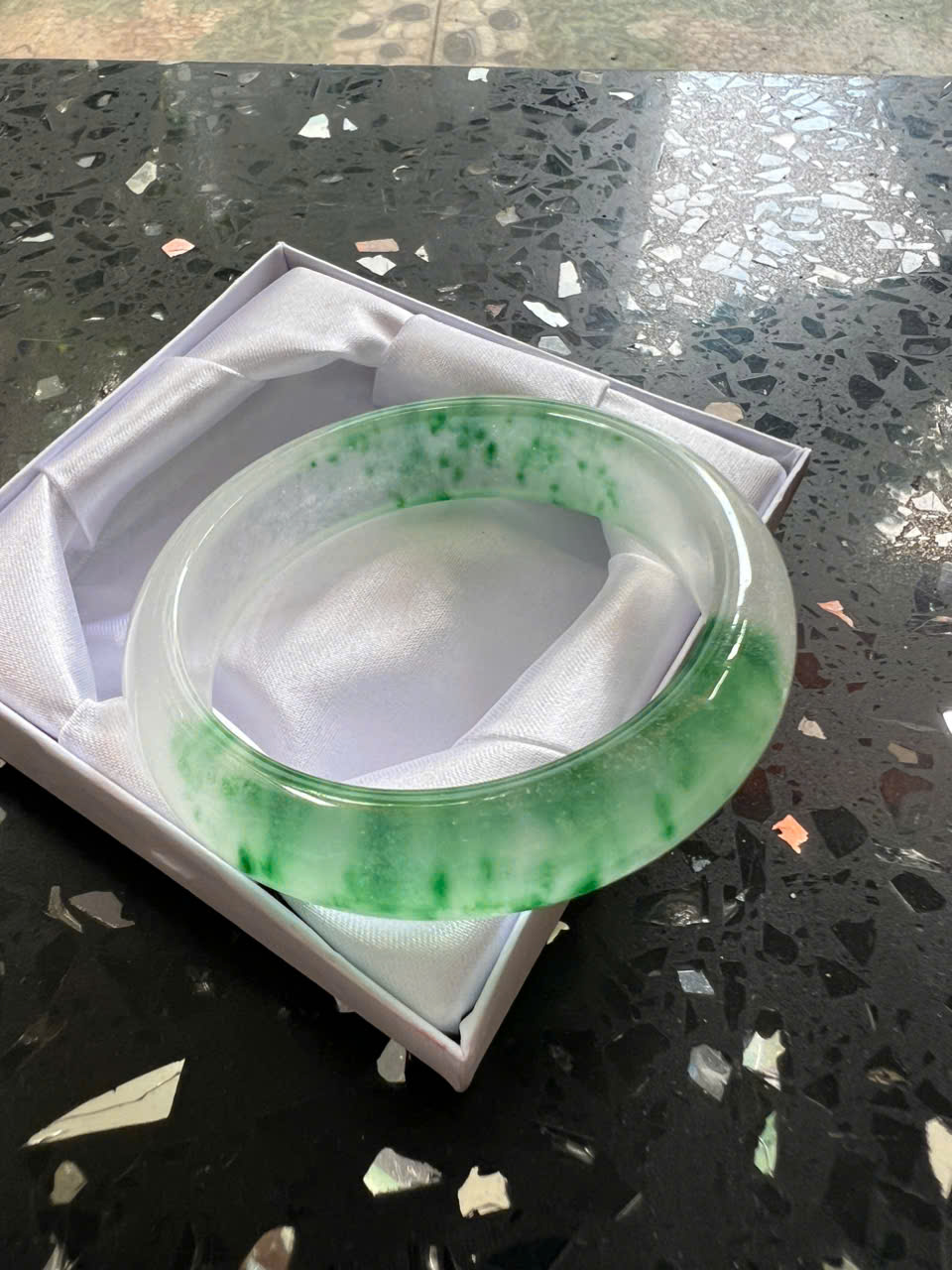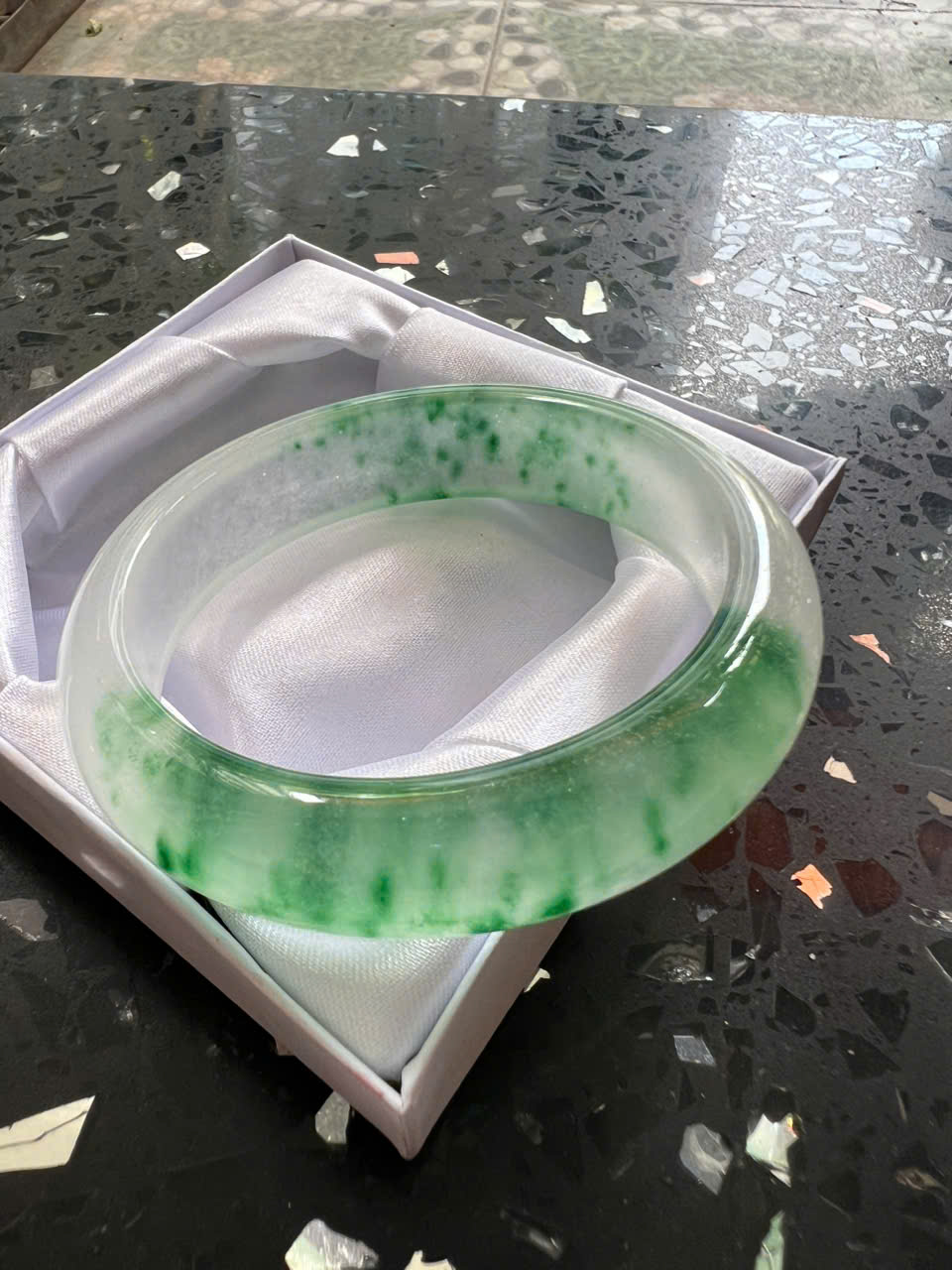 Vòng tay Nữ Đá Cẩm Thạch mới TR Lý 57 mm x cọng 7,5mm Màu Xanh lý tươi trắng 2 bên đều vòng đẹp Nữ 55kg - 64kg đeo đẹp món quà tặng chính mình