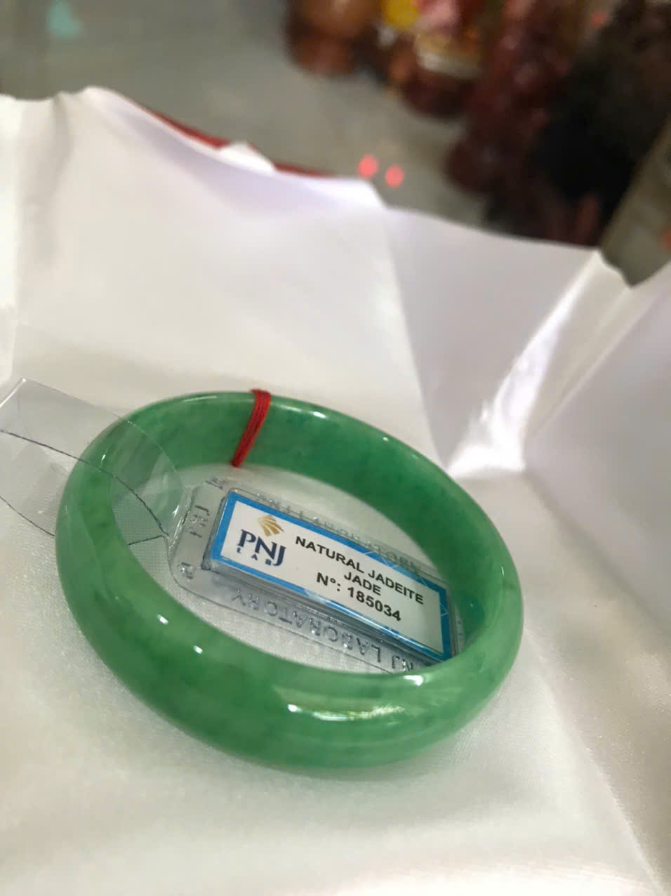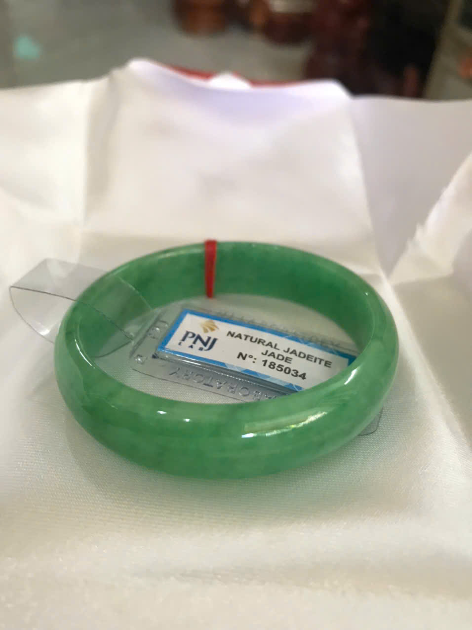 Vòng Tay Nữ Đá Ngọc Cẩm Thạch Tự Nhiên Bản Hẹ Sịn Đậu Lý Sao Ni 48mm Cao 12mm Dầy 6mm đã kiểm định kèm giấy chứng nhận P No 185034 Màu Xanh ngọc lý tươi bóng đều đẹp nữ tay nhỏ 35kg - 48kg ạ
