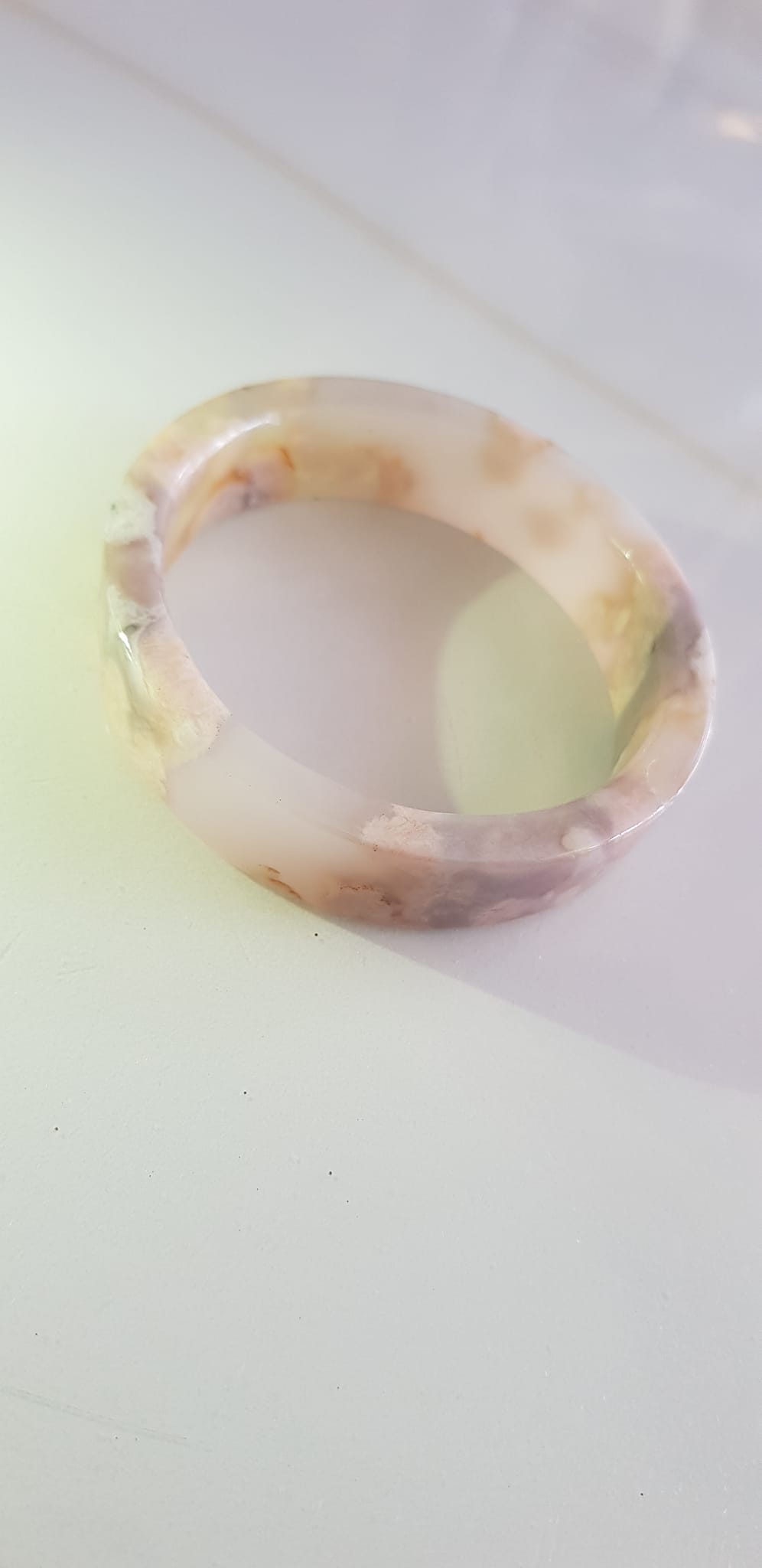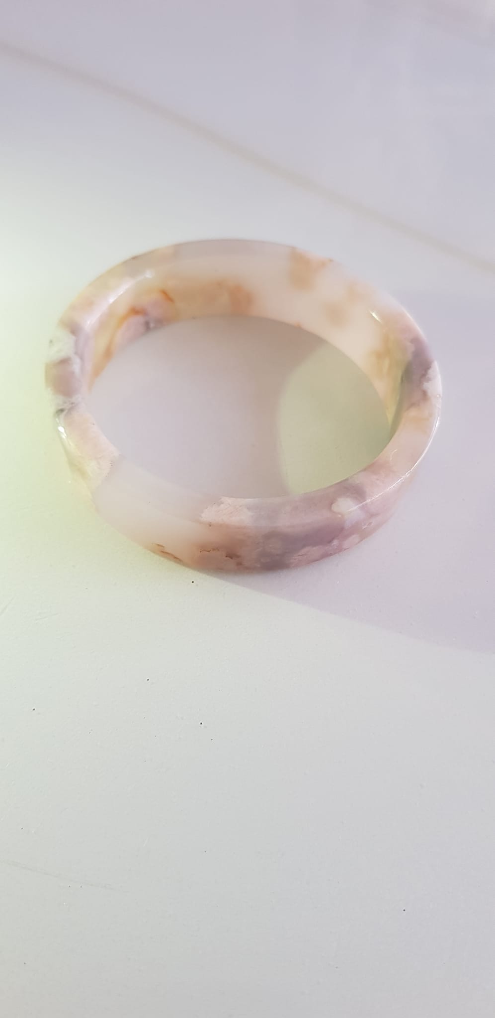 Vòng đeo tay Nữ Bản Hẹ Đá Mã Não Hoa Rau Câu Vòng tay Ni 53mm x Cao 10mm x dầy 7mm bóng đẹp Nữ 50kg - 53kg đeo xinh màu hoa nhẹ nhàng rất