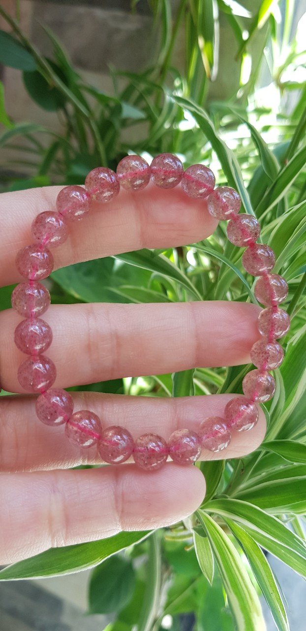Vòng tay phong thủy đá THẠCH ANH DÂU HỒNG size hạt 8mm tự nhiên là sản phẩm phong thủy với chất liệu Thạch Anh giúp mang lại may mắn, tốt cho sức khỏe và công việc cho người đeo.