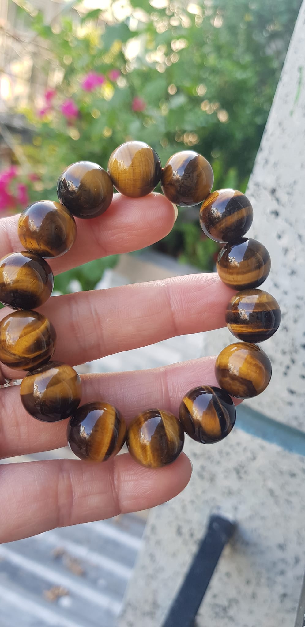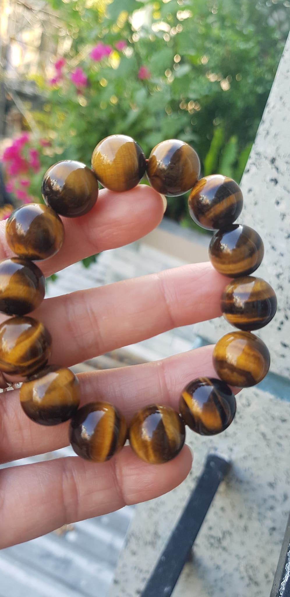 ✨Vòng tay phong thủy Nam Đá Mắt Hổ Vàng Nâu Đậm bóng đẹp Size 4mm hay 14li gồm 14 hạt Hợp nam mệnh thổ mệnh kim ạ