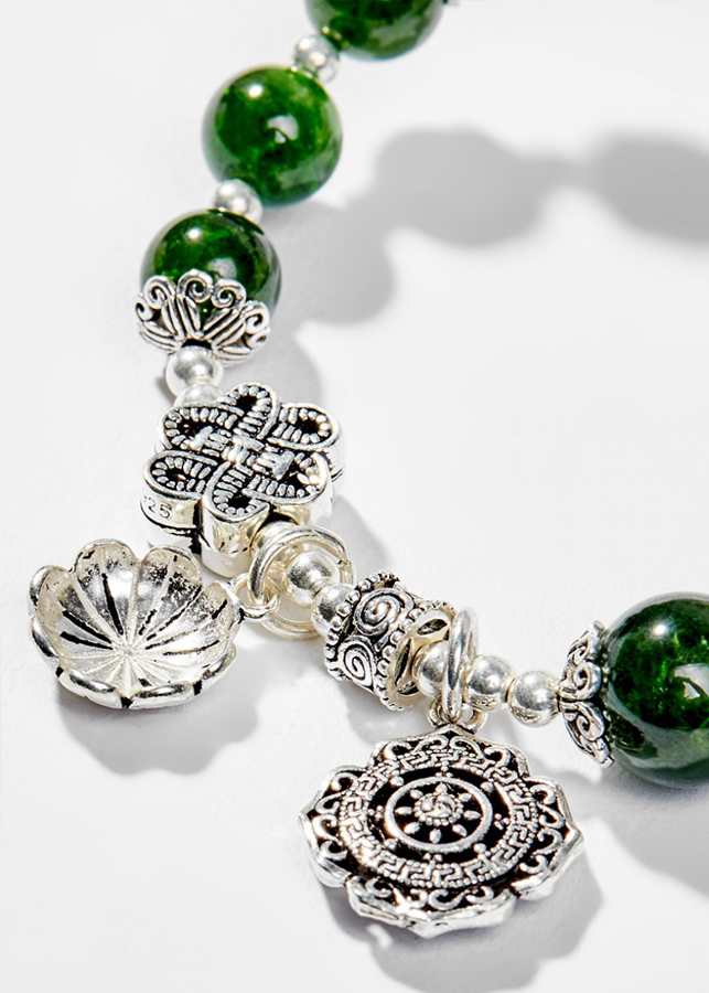 Vòng Tay Phong Thủy Nữ Đá Diopside Phối Charm Hoa Vintage (7mm) Mệnh Mộc, Hỏa