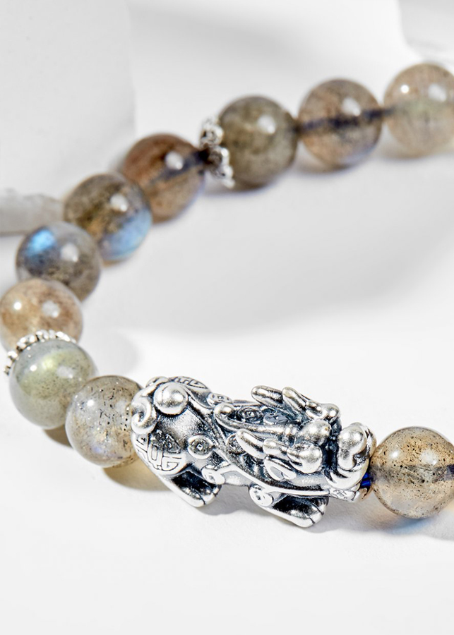 Vòng Tay Phong Thủy Nữ Đá Labradorite Phối Charm Tỳ Hưu Bạc (6mm) Nhiều Mệnh Từ lâu người ta biết đến đá Labradorite ( Xà cừ) là viên đá có vẻ đẹp trang nhã, tinh tế và không kém phấn sang trọng nên được sự khẳng định của động đảo tín đồ phong thủy. Giúp chủ nhân có khả năng liên kết với vũ trụ và tâm linh, tiềm đến cội nguồn của sự sống, bảo vệ người đeo trước những điều xui xẻo, vận rủi. Vòng Tay Phong Thủy Nữ Đá Labradorite Phối Charm Tỳ Hưu Bạc (6mm) Nhiều Mệnh được làm từ đá Labradorite.
