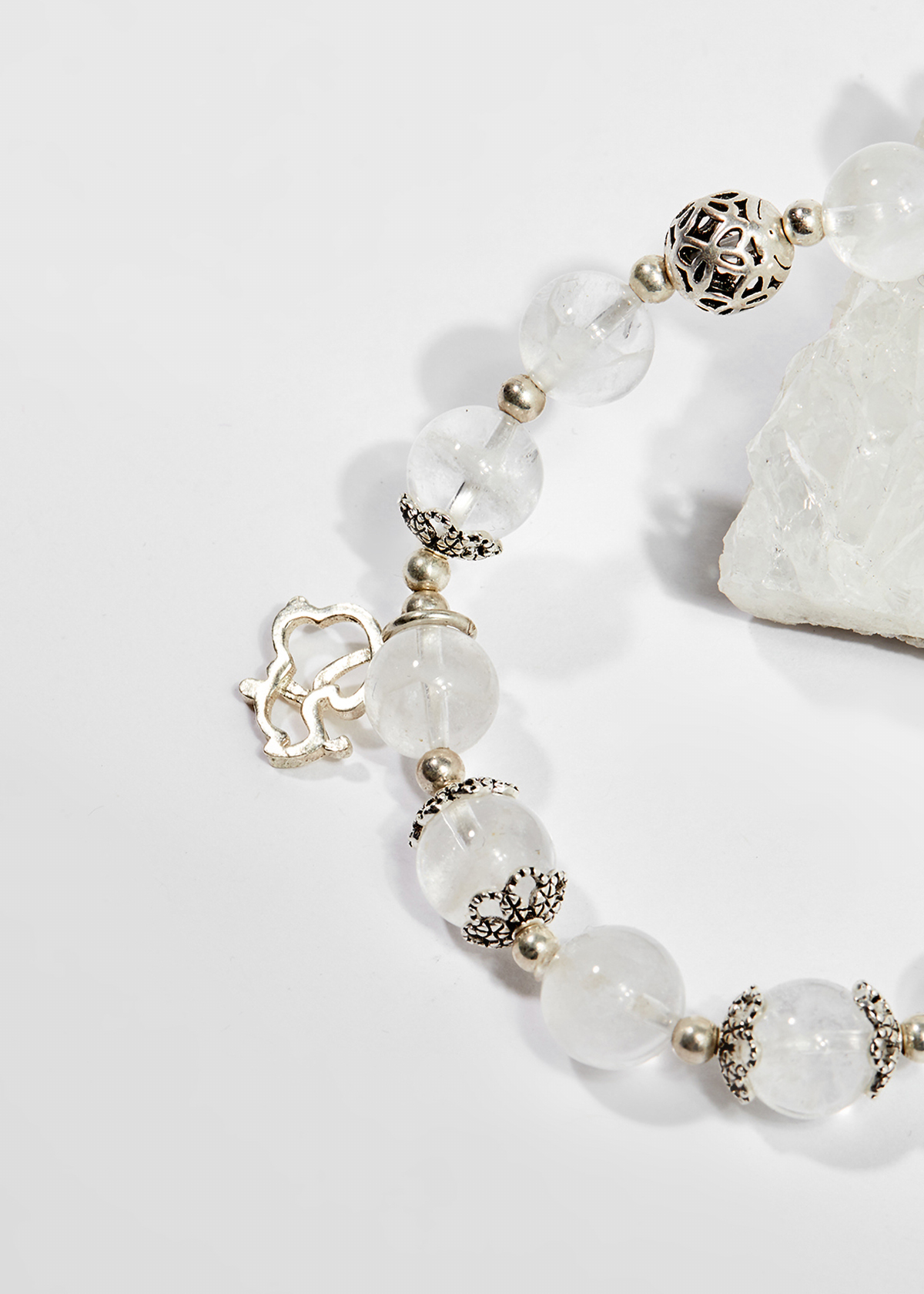 Vòng tay đá thạch anh ưu linh trắng phối charm bạc - Hợp mệnh kim, mệnh thủy | Ngọc Quý Gemstones |