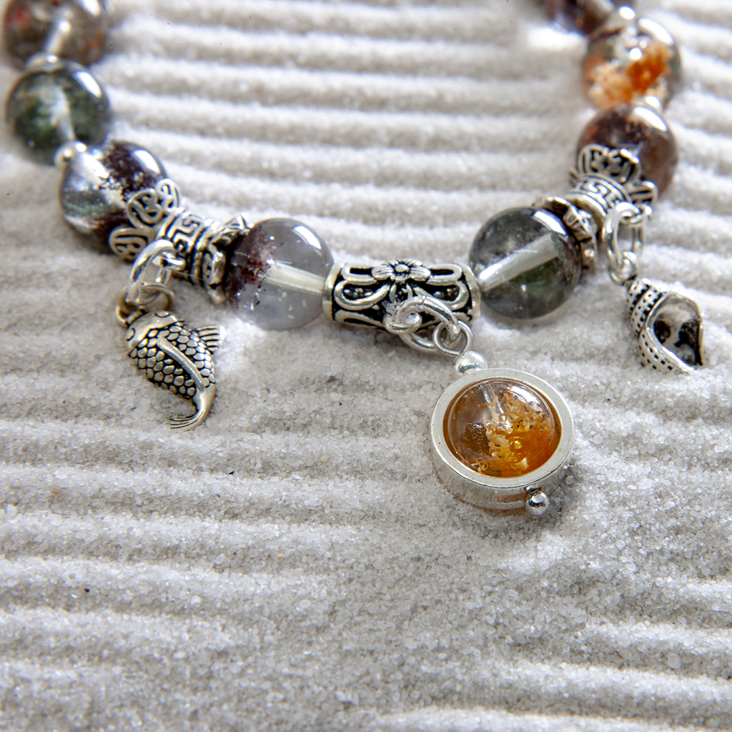 Vòng tay phongg thủy Mắt hổ vàng tâm 8mm + Thạch Anh Tóc nâu by Anqlo là sản phẩm được chế tác tinh xảo, có độ hoàn thiện cao bởi các nghệ nhân lâu năm