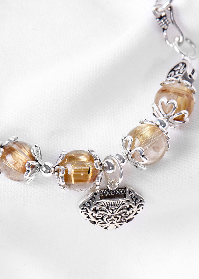 Vòng tay đá thạch anh tóc vàng phối charm bạc - Hợp mệnh kim, thủy | Ngọc Quý Gemstones |