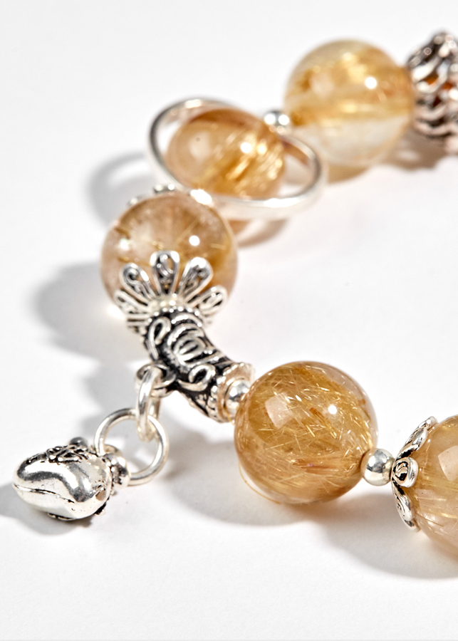 Đeo Vòng Thạch Anh Tóc Vàng Phối Charm Túi Tiền Bạc (11mm) Ngọc Quý Gemstones giúp gia tăng khả năng tập trung trí óc, thúc đẩy hoạt động năng nổ, rất thích hợp với người làm việc kinh doanh, nghiên cứu khoa học và sáng tạo.