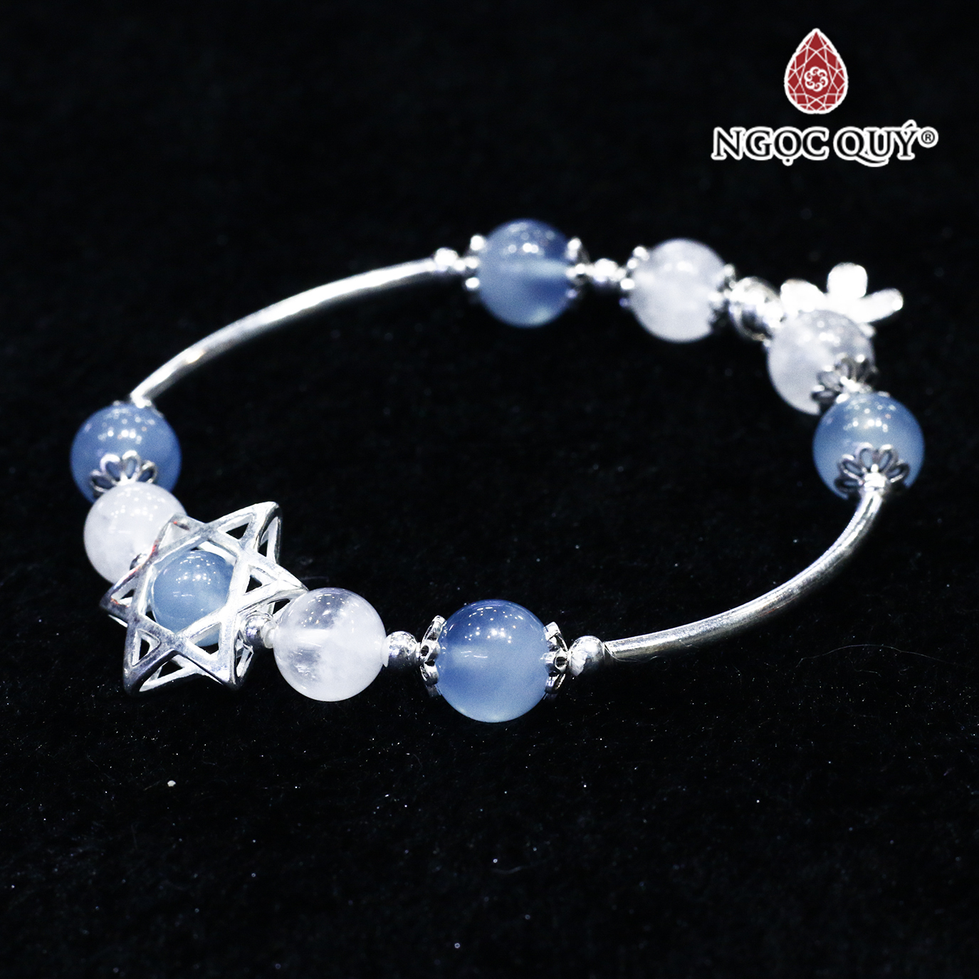 VÒNG TAY THẠCH ANH ƯU LINH TRẮNG PHỐI AQUAMARINE