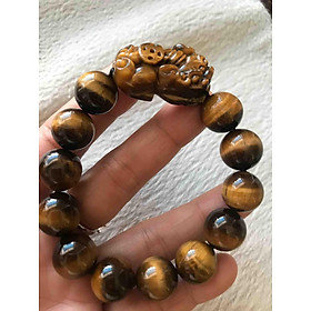 Vòng tay đá mắt hổ tự nhiên vàng nâu nam mệnh kim mệnh thổ size 14ly ạ / Gỗ đá phong thủy Sunny Q8