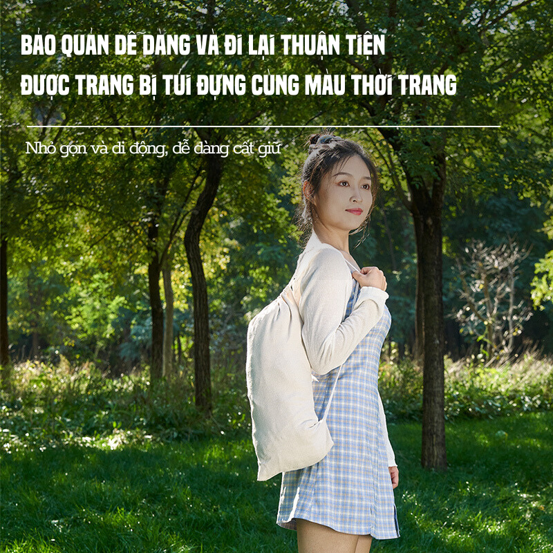 Không cần dụng cụ phức tạp, chỉ trong 3 phút bạn đã có thể lắp đặt xong võng. Khi không sử dụng, võng và các bộ phận dễ dàng gấp gọn và cất trong túi đựng kèm. Sự tiện lợi này giúp bạn dễ dàng mang theo võng mọi lúc, mọi nơi mà không chiếm diện tích.