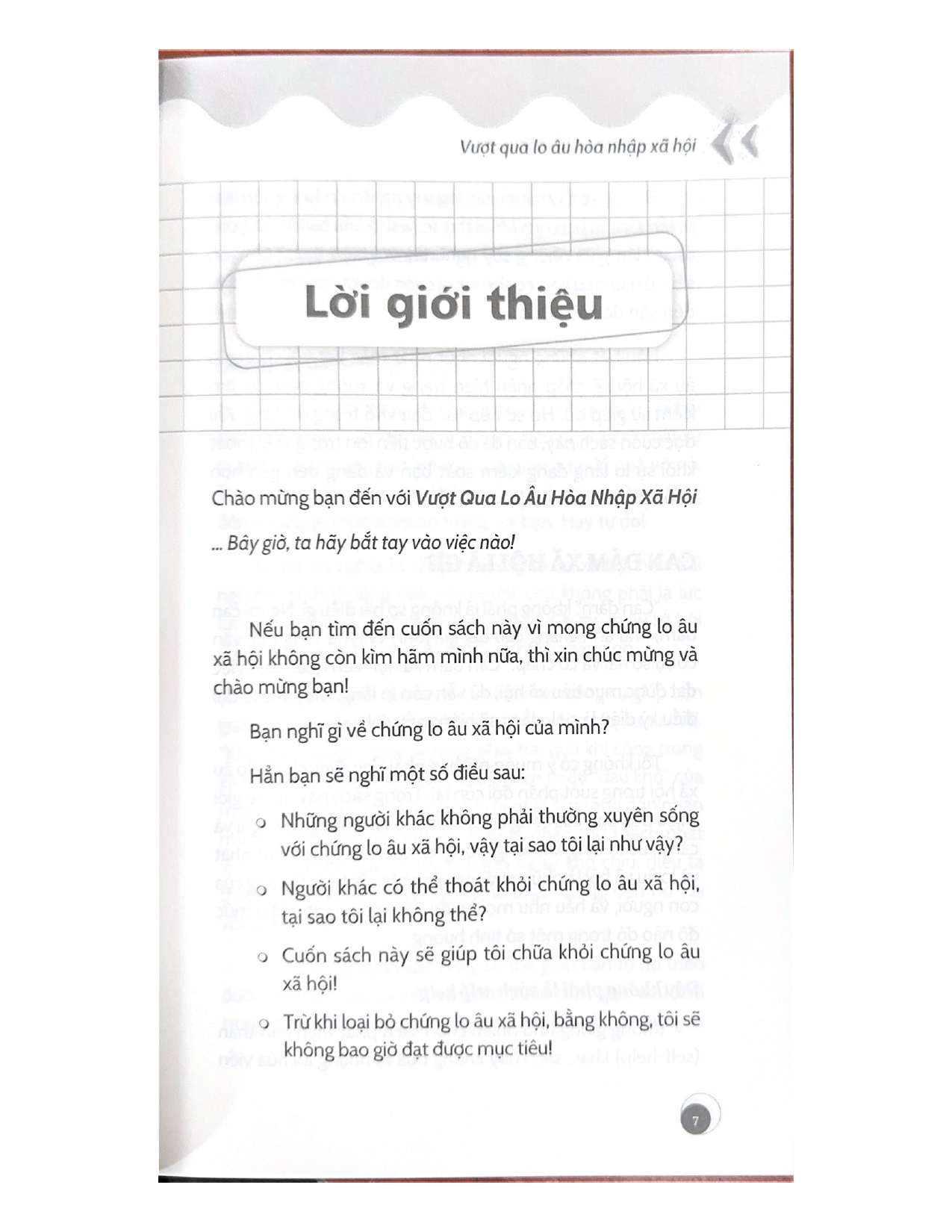 Dù bạn đang vật lộn với chứng lo âu xã hội ám ảnh hay chỉ cảm thấy sợ hãi khi nói trước đám đông, hay cần phải đáp ứng một mục tiêu xã hội cụ thể, cuốn sách này sẽ chỉ cho bạn con đường để hướng tới cuộc sống tốt đẹp hơn.