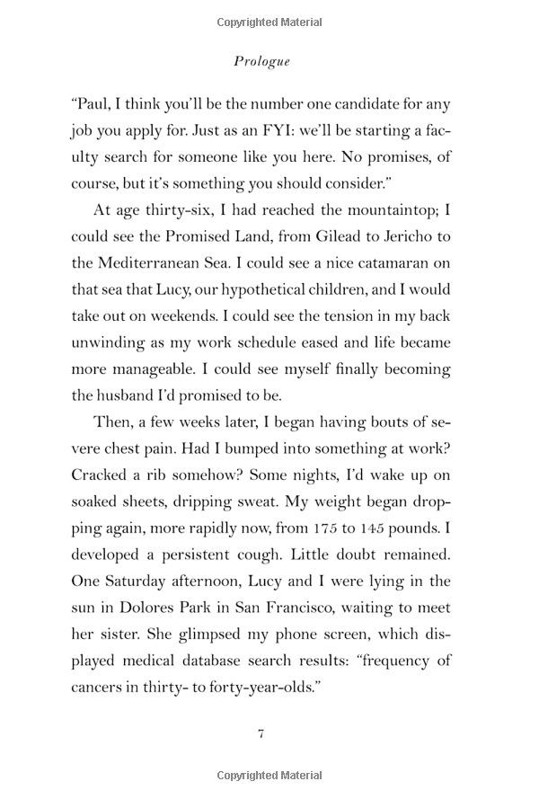 At the age of thirty-six, on the verge of completing a decade’s training as a neurosurgeon, Paul Kalanithi was diagnosed with inoperable lung cancer. One day he was a doctor treating the dying, the next he was a patient struggling to live.