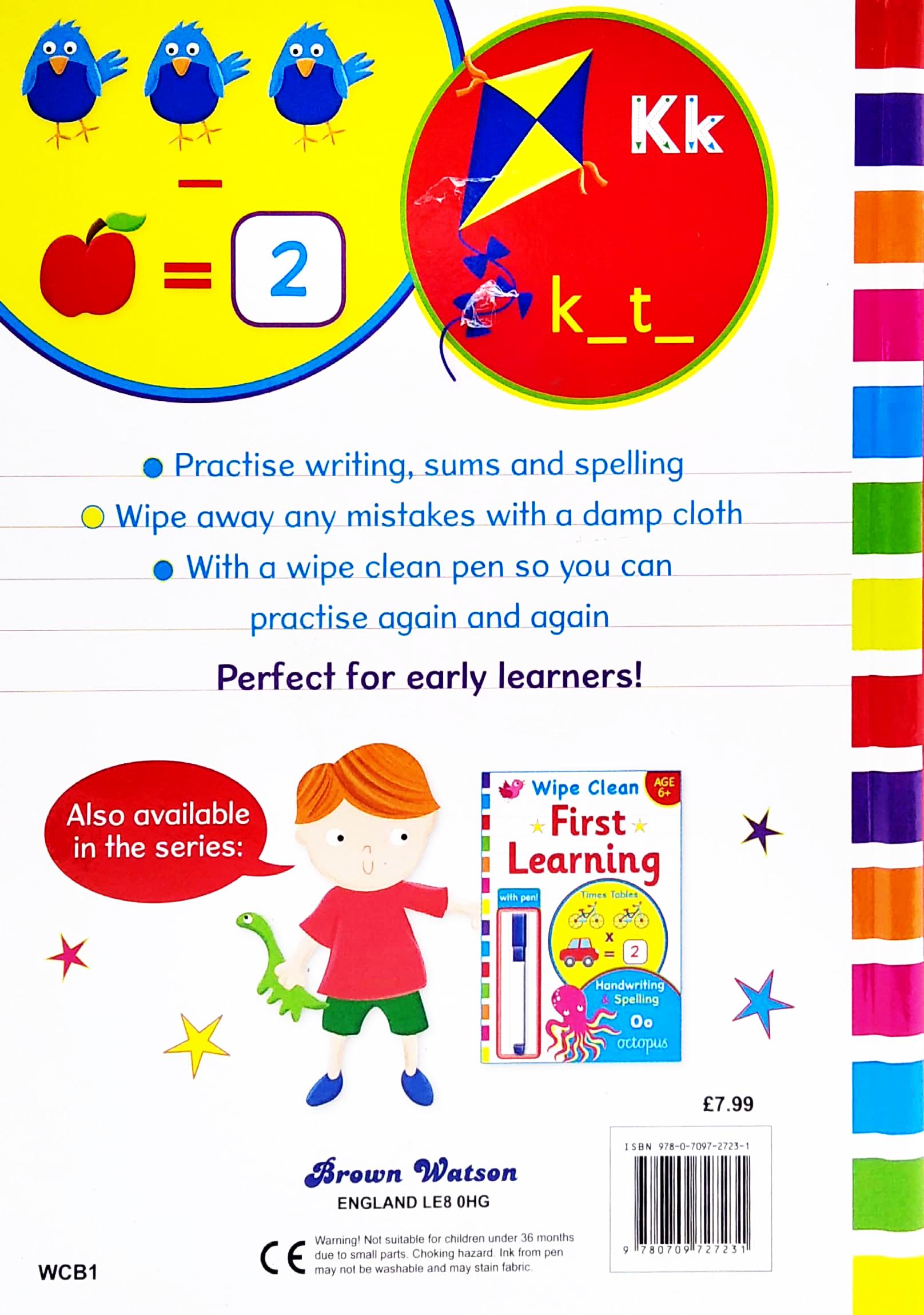 Wipe Clean Bind Up 4+ - Early Learning (With Pen) Practise writing, sums and spelling. Wipe away any mistakes with a damp cloth. With a wipe clean pen so you can practise again and again.