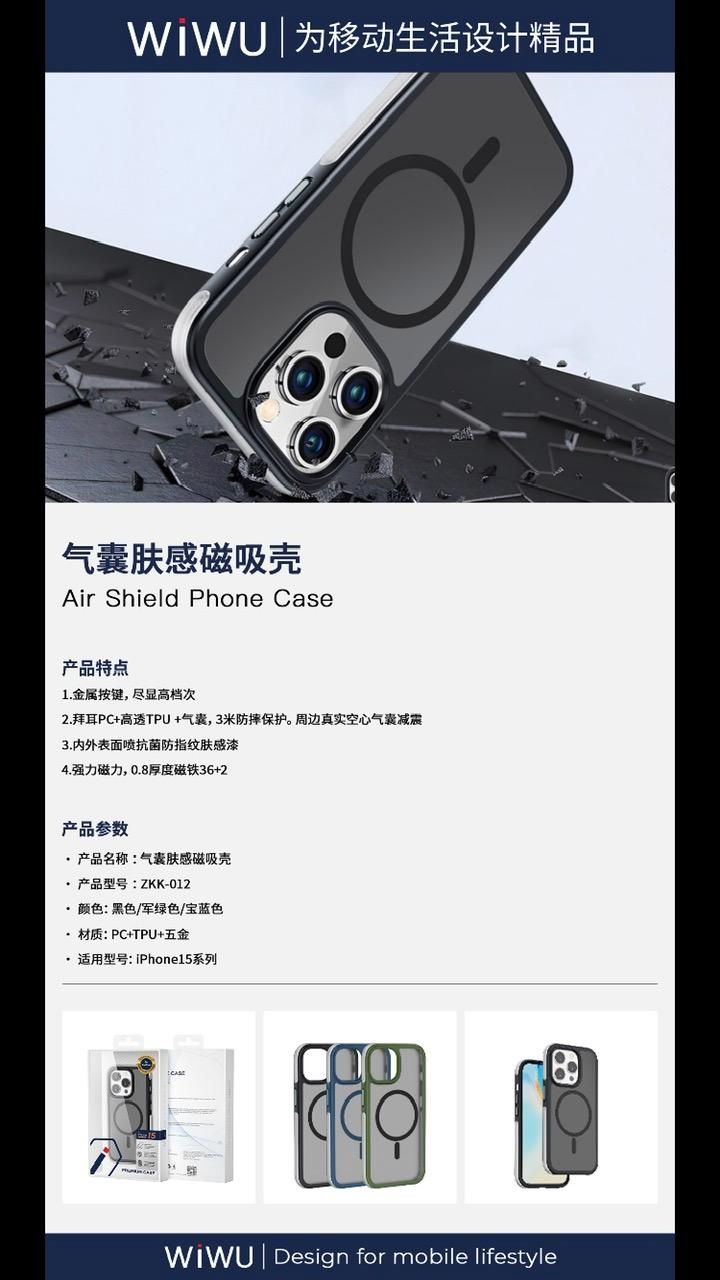 Thông tin sản phẩm : WIWU Air Shield Case - Ốp lưng nhám chống sốc cho IPhone 15 Pro Max , hỗ trợ sạc không dây chống bám bẩn