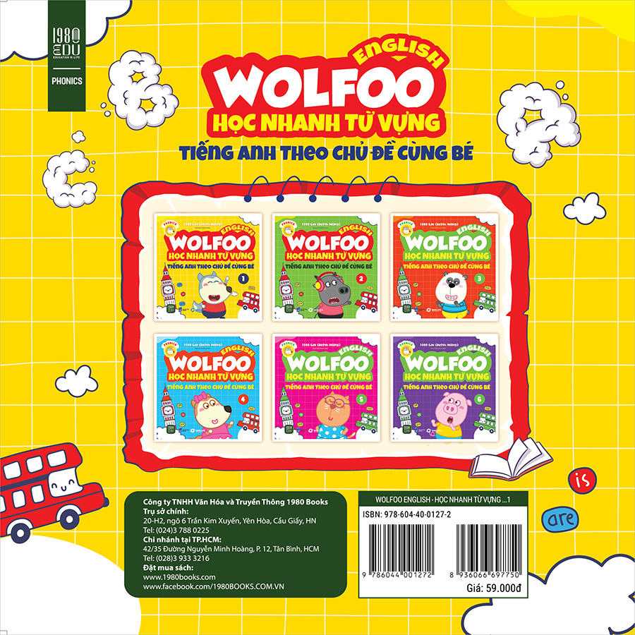Bộ sách “Wolfoo English - Học nhanh từ vựng tiếng Anh theo chủ đề cùng bé” sẽ giúp các bậc phụ huynh giúp con học và làm quen với các chủ đề tiếng anh mỗi ngày. Thông qua các câu chuyện ngắn theo từng chủ điểm như số đếm, hình học, thời tiết, khí hậu,… Trẻ sẽ dễ dàng học và ghi nhớ sâu hơn từ vựng, mẫu câu giao tiếp đơn giản. Kết hợp với những hoạt động củng cố như quan sát, ghép nối, tô màu và dán nhãn trẻ sẽ thích thú hơn trong việc học và chơi cùng mỗi ngày với sách. Bộ sách không những giúp trẻ học nhanh nhớ lâu từ vựng mà còn kích thích trí tưởng tượng, khả năng tư duy duy, vận dụng ngôn ngữ linh hoạt và khơi gợi tình yêu khám phá, học tập ngay từ sớm của các thiên tài nhí.