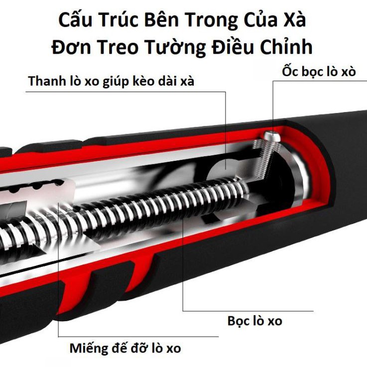 - Đừng lo chiều rộng hay hẹp của ô cửa bạn chọn vì Xà Đơn Gắn Cửa có thể thay đổi độ dài sao cho phù hợp với từng kích thước vị trí cần lắp đặt