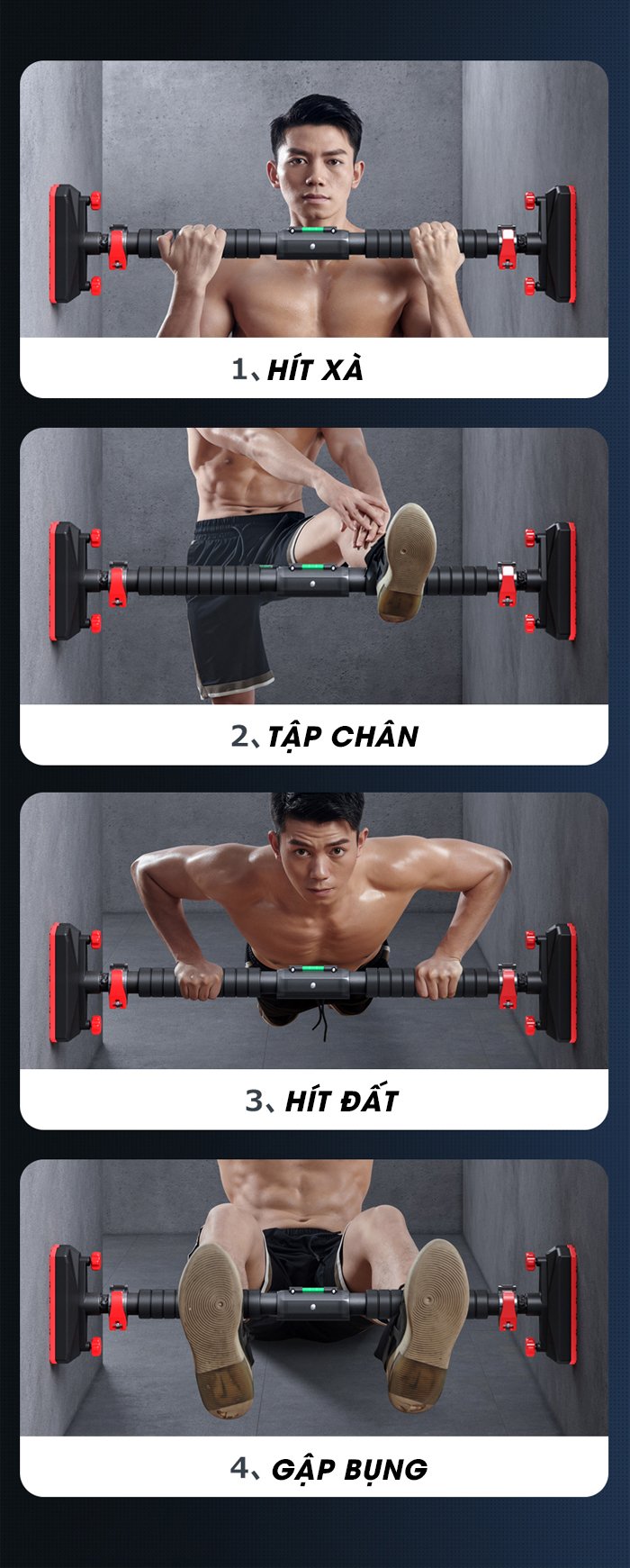 Mô Tả Sản Phẩm: XÀ ĐƠN ,XÀ KÉP GẮN TƯỜNG ĐA NĂNG [ 6 TAY NẮM ] ,TẬP GYM , TREO BAO CÁT TẠI NHÀ SIÊU CHẮC - XÀ KÉP Wall Pull Up Bar P90X