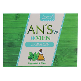 Xà Phòng Thiên nhiên AN'Sw Bạc Hà [Men] Với sự kết hợp giữa tinh dầu Bạc Hà, dầu Olive và Glycerin xà phòng thiên nhiên An’sw giúp làm sạch và không gây khô da, dưỡng da mềm mại. Tinh dầu Bạc Hà the mát, giúp tinh thần thư giãn, sảng khoái dài lâu.