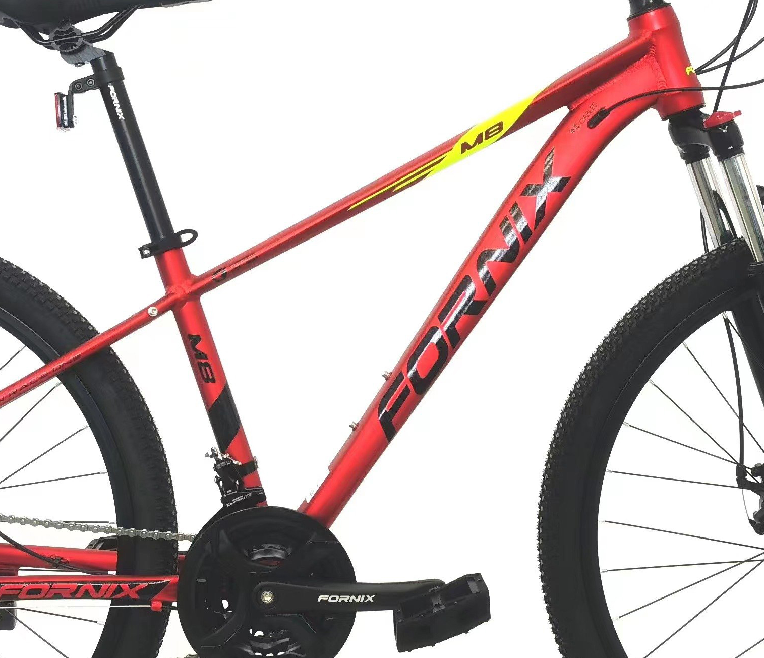Khung sườn hợp kim nhôm Bộ truyền động 21 tốc độ ( 3 đĩa và 7 líp) Vòng bánh 27.5 inches Trọng lượng 15 Kg FORNIX M8 là dòng xe đạp địa hình với thiết
